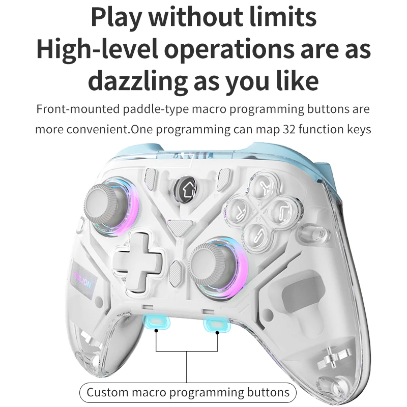 El diseño moderno del mango es transparente y directamente compatible con NS/NS Lite/NS OLED. Admite sistemas IOS y Android.
