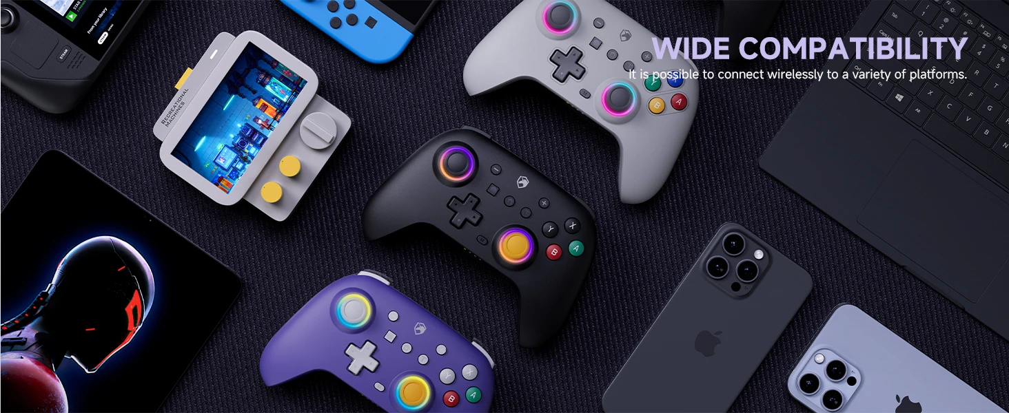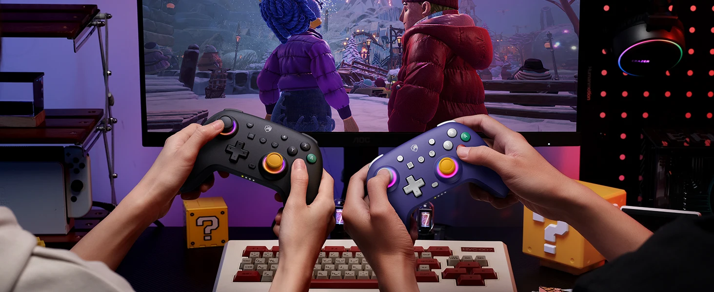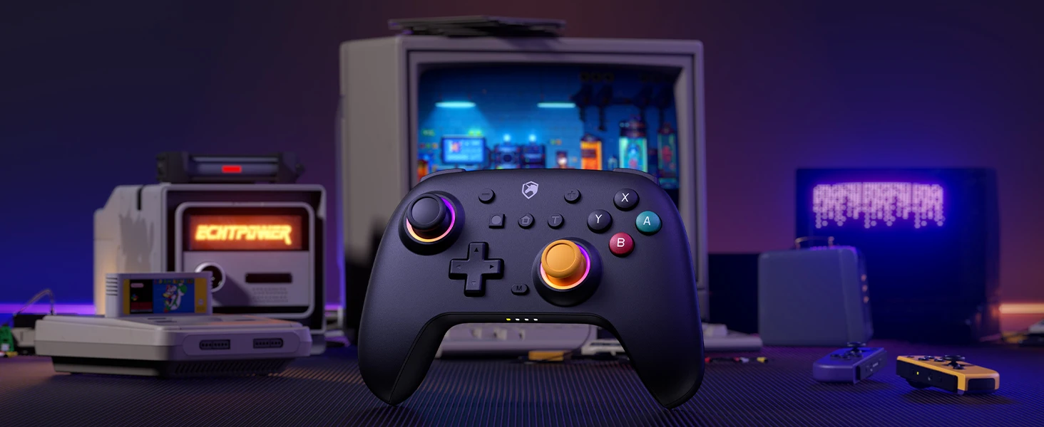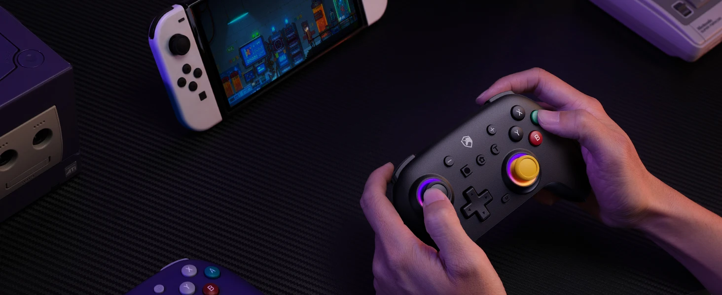 Diseñado por el ECHTPotenciaEquipo, este controlador inalámbrico premium fusiona la comodidad ergonómica con una estética nostálgica clásica violeta inspirada en NGC, perfecta para sesiones de juego de maratón.Disfrute de una compatibilidad multiplataforma perfecta (Nintendo Switch2/Lite/OLED, iOS, Android, PC, Steam Deck) a través de Bluetooth inalámbrico o conectividad USB-C por cable.