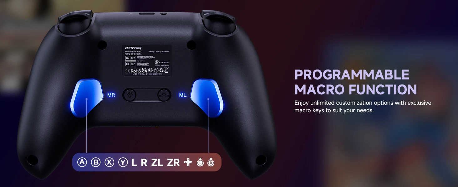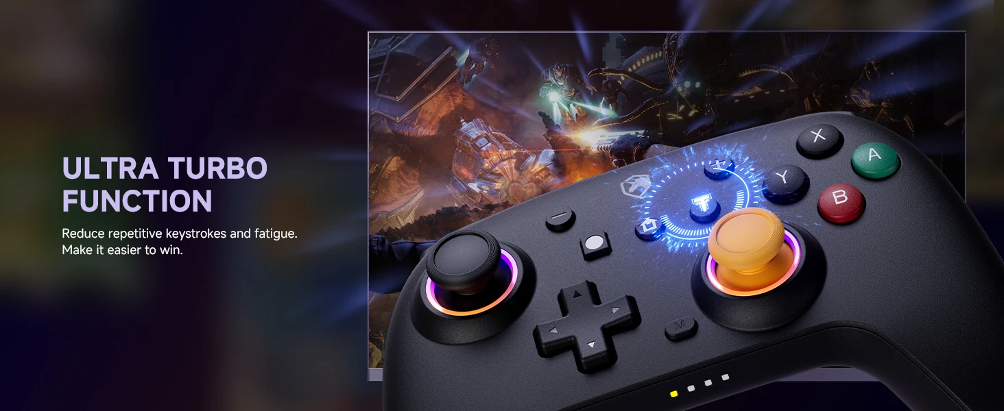 Giroscopio de 6 ejes y vibración ajustable: controles de movimiento maestros con precisión milimétrica.Los motores duales proporcionan 4 niveles de vibración (fuerte/medio/débil/apagado) para una retroalimentación inmersiva.