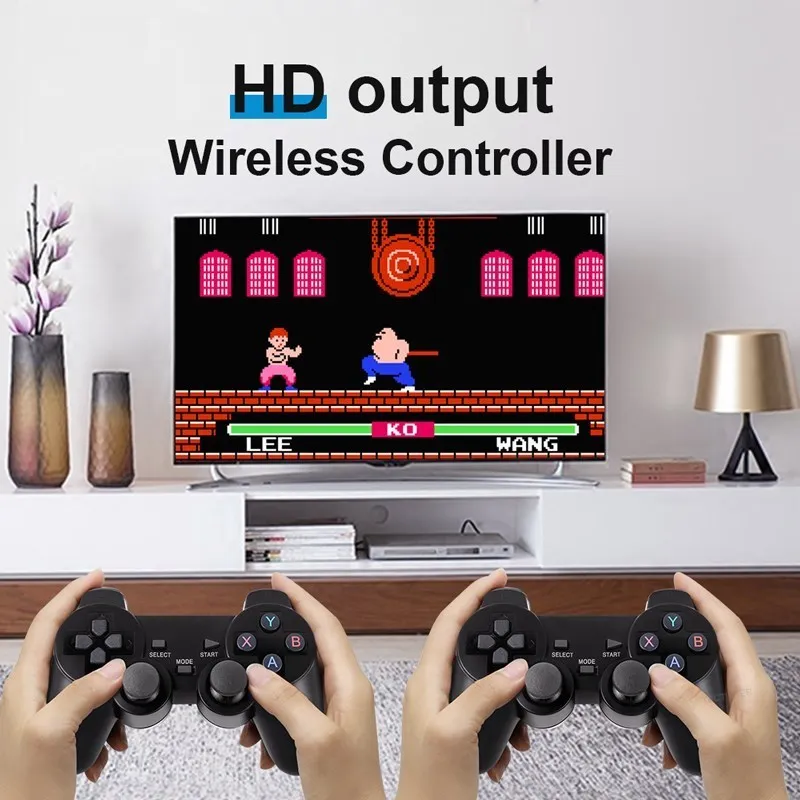 Equipado con dos controladores de juego de 2,4G, admite hasta 1-2 jugadores al mismo tiempo, puede controlar y disfrutar del juego de forma remota en el sofá con su familia o amigos.