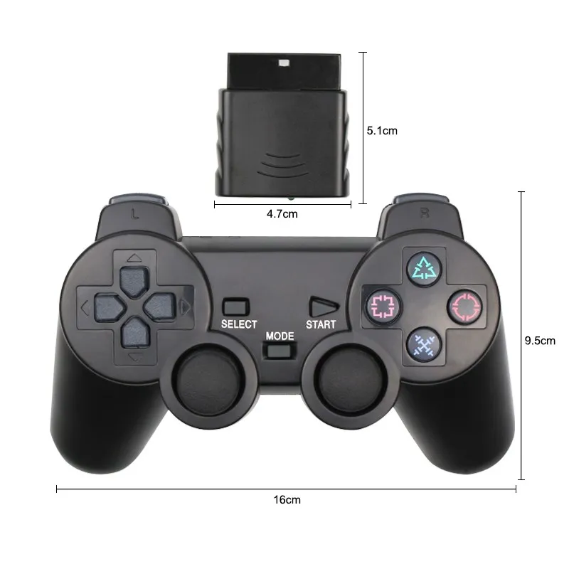 Este artículo es un controlador inalámbrico de 2,4G para Sony PlayStation 2, conexión automática Superior. El uso de chips de alto rendimiento, el mando del juego tiene una mejor estabilidad, Rockers de alta precisión de 360 °, el retraso es casi cero. Con la Diseño de curva del cuerpo humano, no te sentirás cansado incluso si eres adicto al juego durante mucho tiempo. También es compatible con PS3/PC win7/8/10, pero necesitas la conversión del adaptador PS2, enlace de compra: