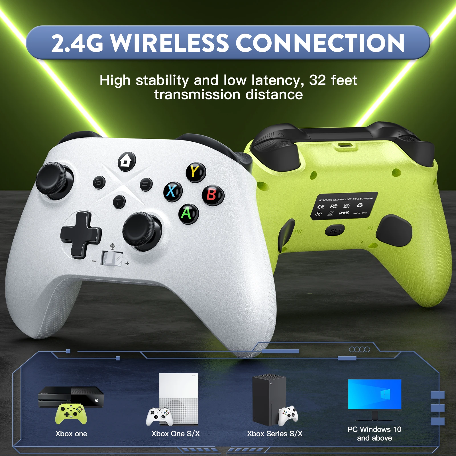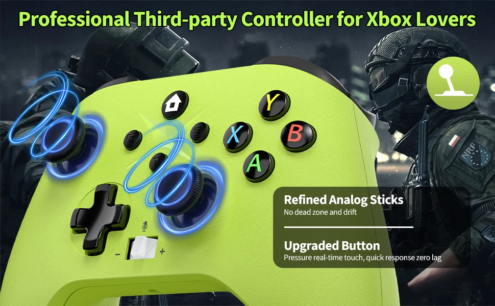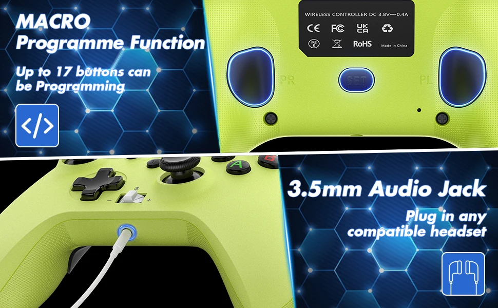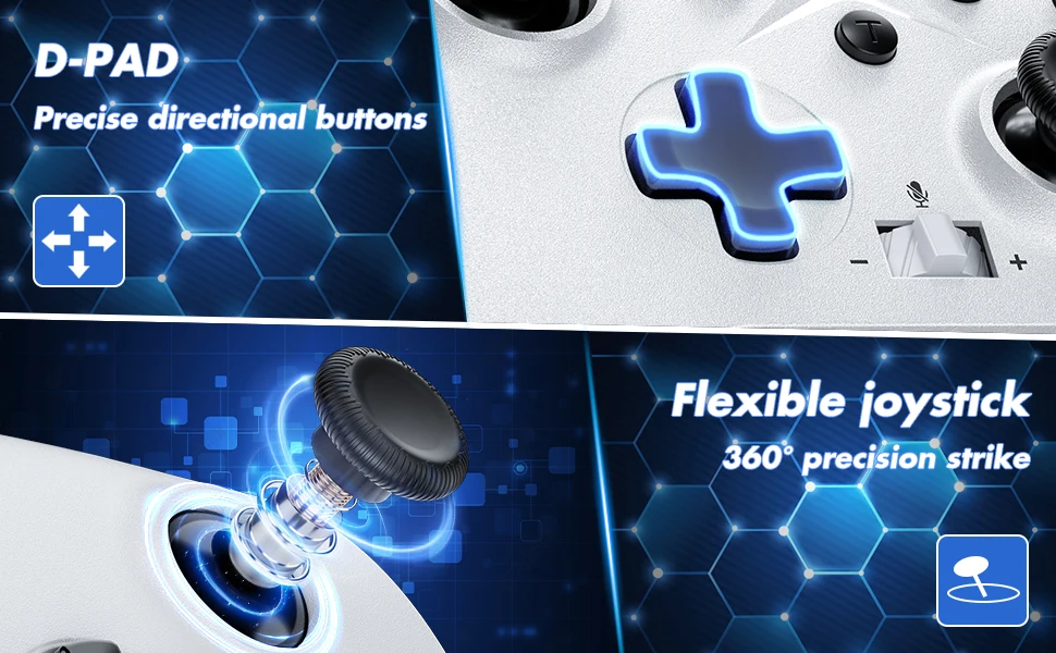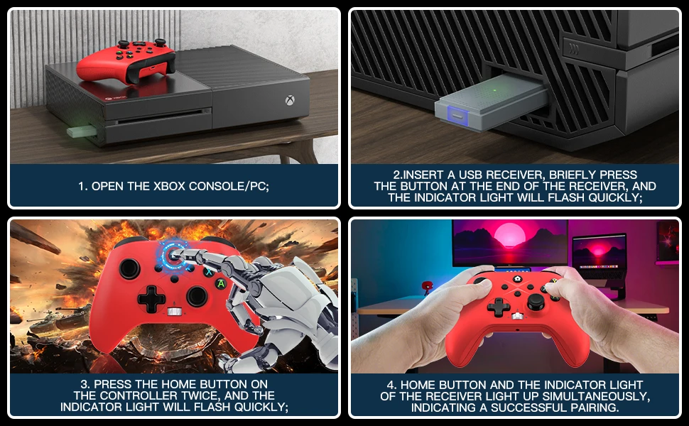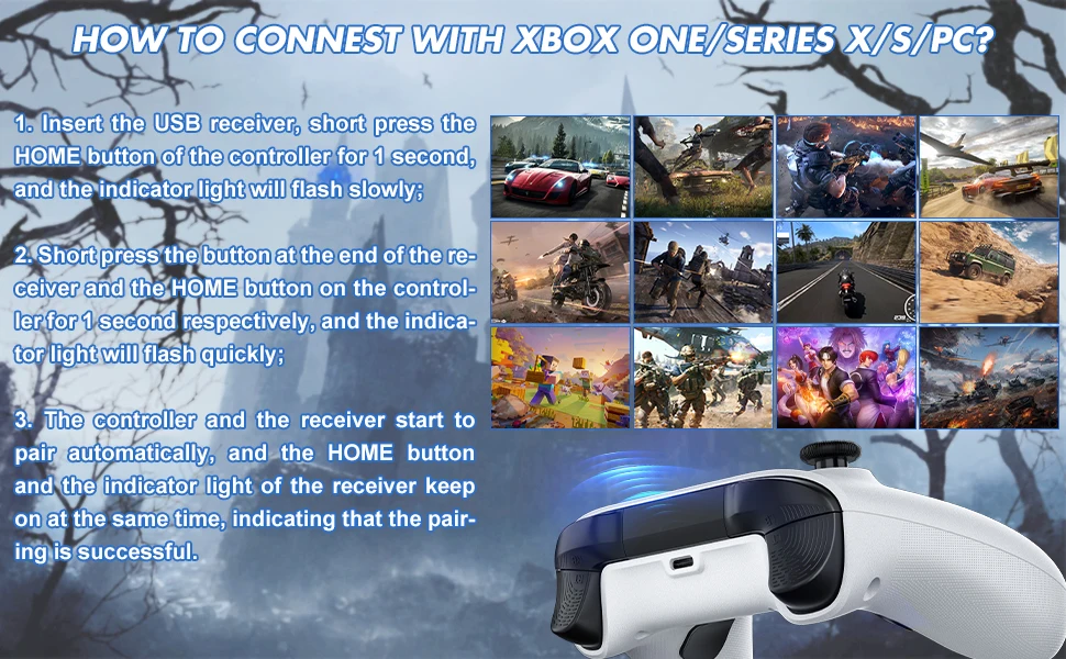 Una nueva versión del mango inalámbrico de 2,4G y también son posibles conexiones por cable. Se puede conectar de forma inalámbrica con una computadora PC (Windows10 y superior).