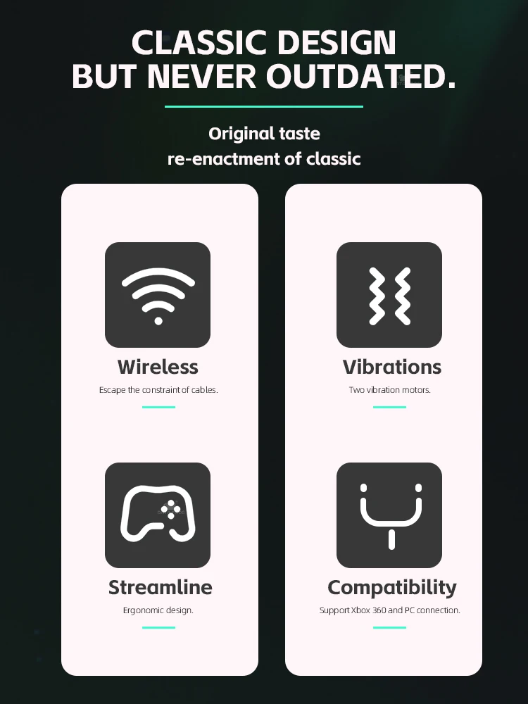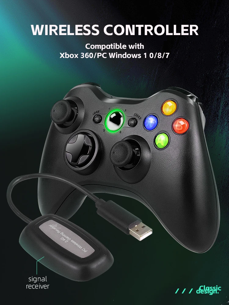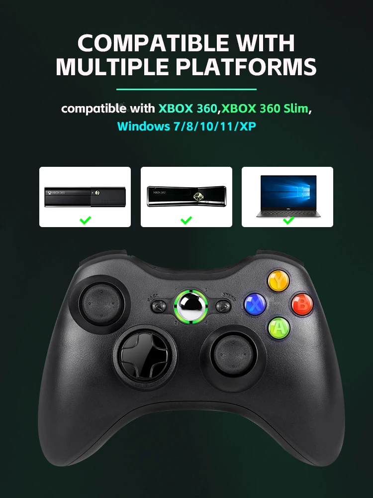 Disfrute de la libertad de la conectividad inalámbrica con este gamepad, que se conecta a sus consolas de videojuegos Xbox 360/360 Slim/Pc/Ps3 a través de la tecnología inalámbrica de 2,4 g.