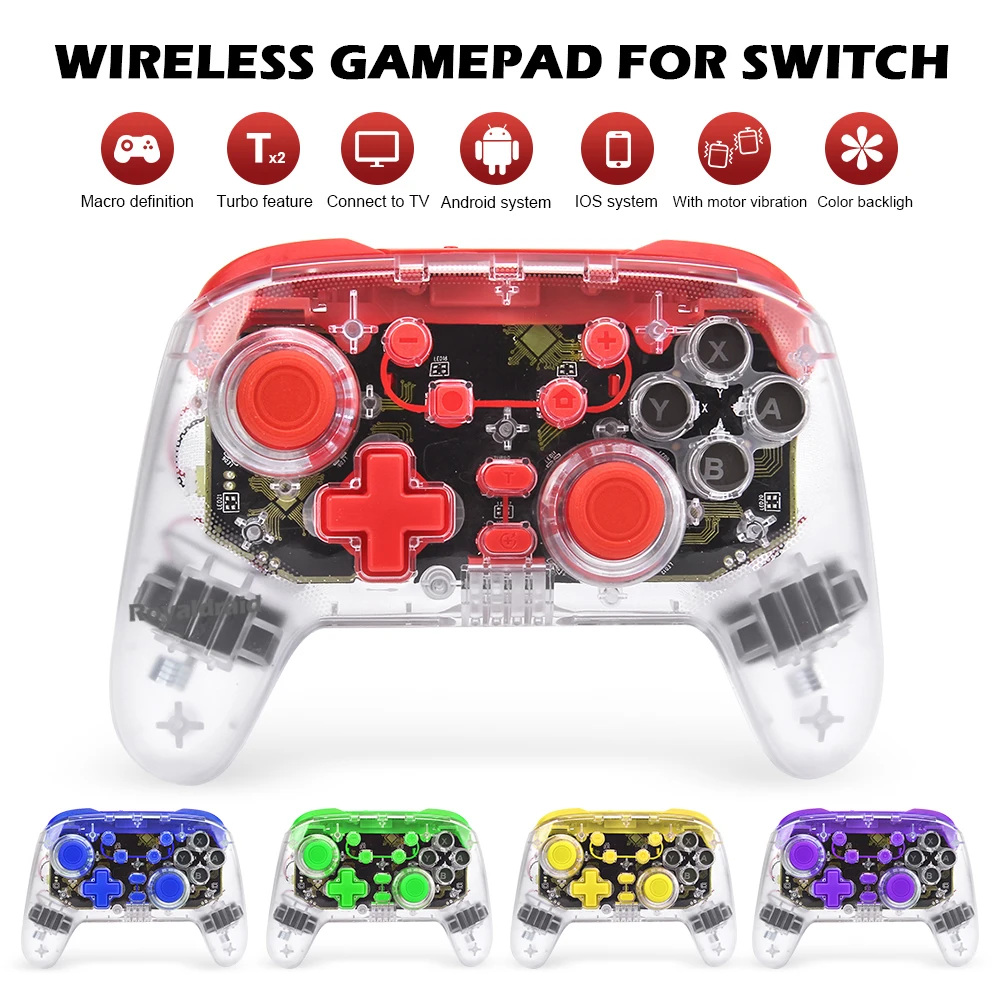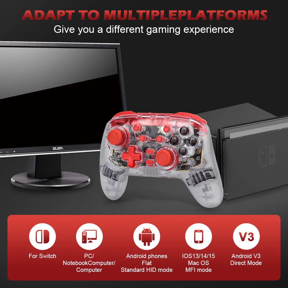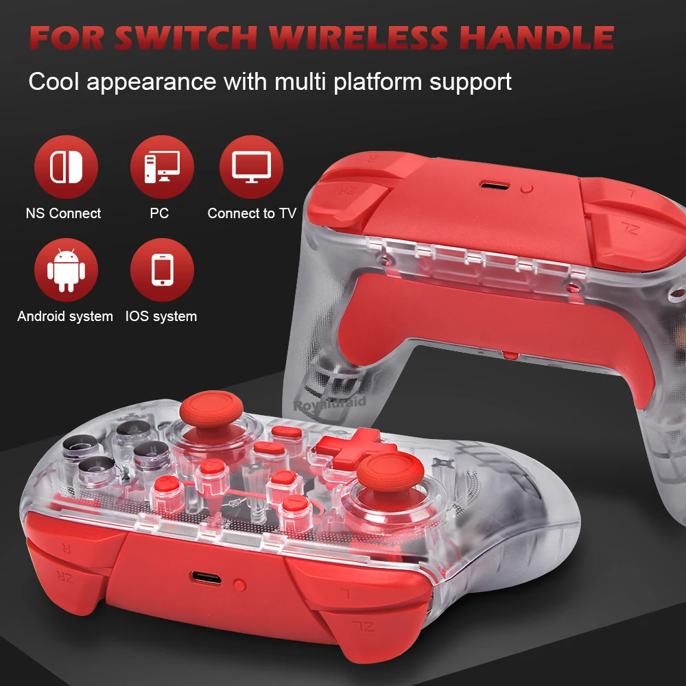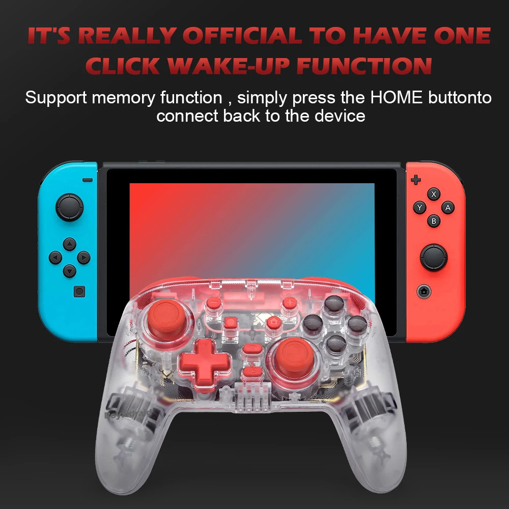 Gamepad multiplataforma S10 para Switch/OLED controlador inalámbrico BT para P3/P4/PC controlador de Juego 6 ejes joysticks de juego transparentesCaracterísticas:1. Tres modos de conexión:El controlador de juego para Switch Pro admite modos de conexión inalámbrica con cable, compatible con Bluetooth y 2,4G que se pueden cambiar fácilmente.