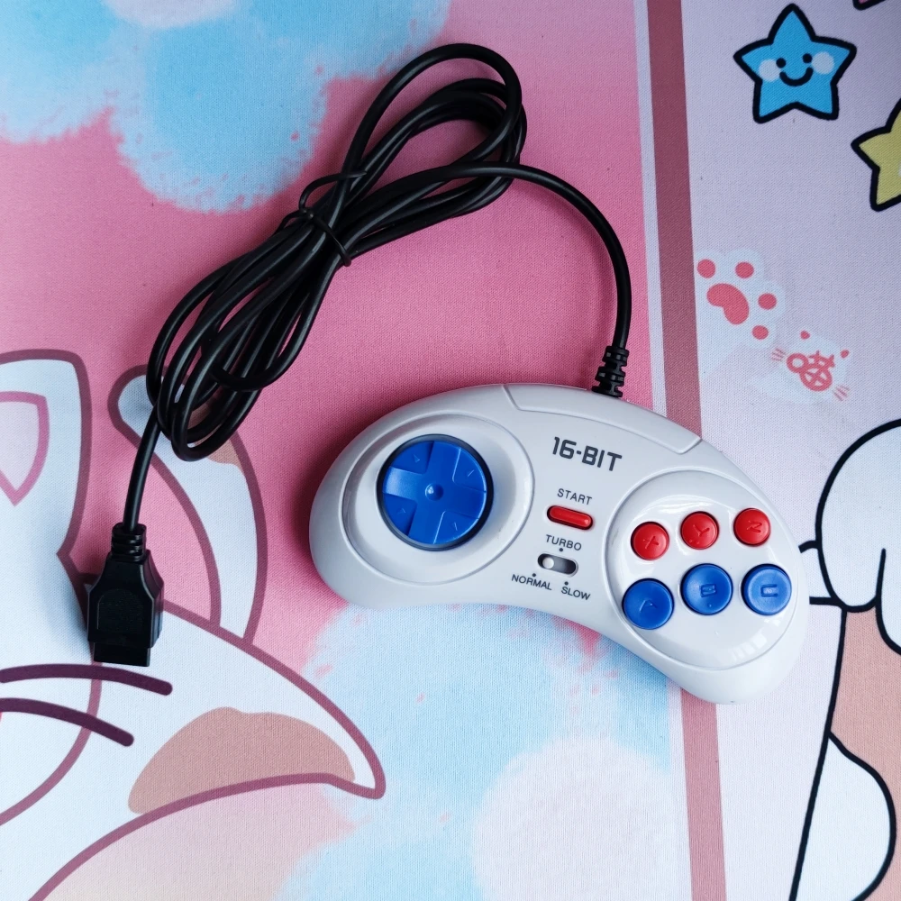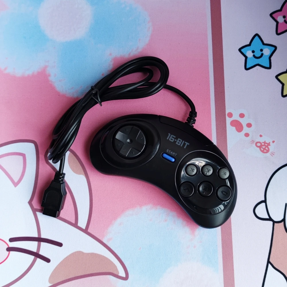 Es del mismo tamaño que mi control de Mega Drive 4. Me gustó porque a este precio era casi gratis. ¡Puedes jugar cómodamente con él! Todo funciona como se espera.