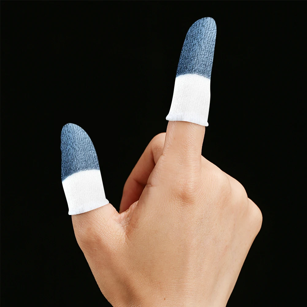 1. Tejido compuesto innovador:Mangas de dedo de doble punto para juegos de teléfono con tecnología innovadora de tejido compuesto. Las fibras conductoras de alta densidad mejoran la sensibilidad táctil y la durabilidad, lo que garantiza un rendimiento duradero para juegos competitivos.