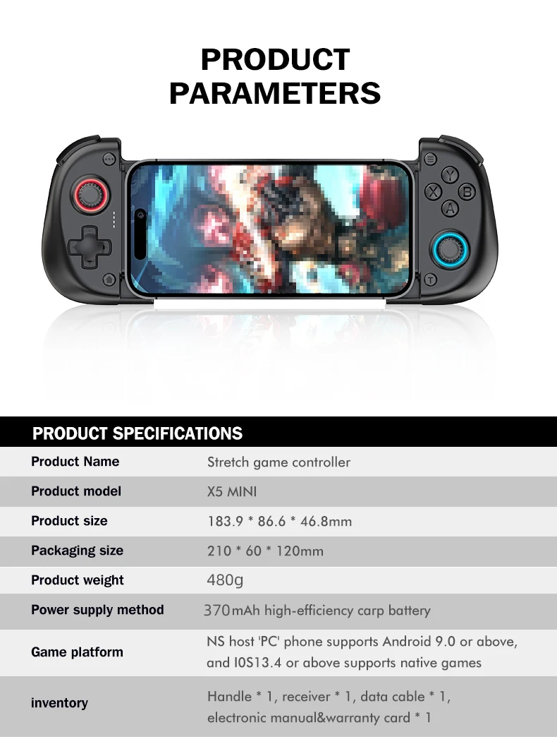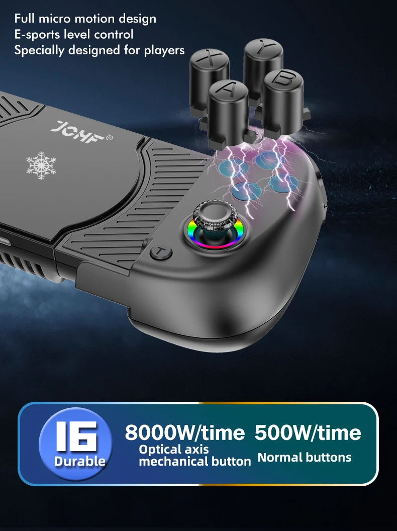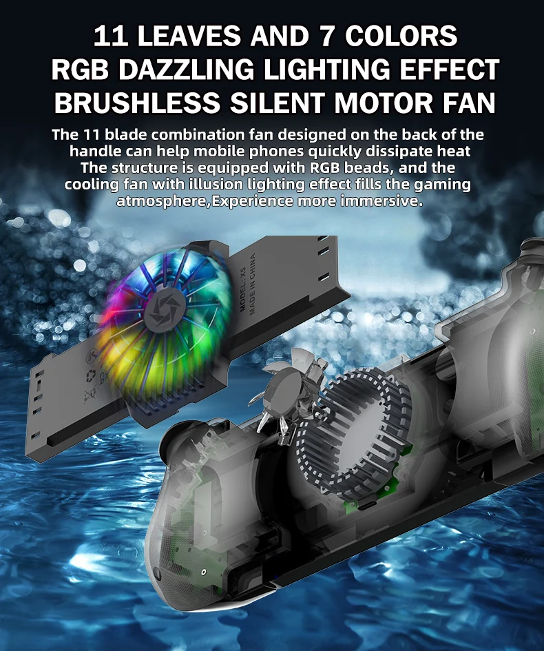 Mango elástico de refrigeración con balancín Hall, gatillo Hall de dos etapas, giroscopio de 6 ejes, ventilador silencioso y iluminación RGB de 7 colores X5 MINI
