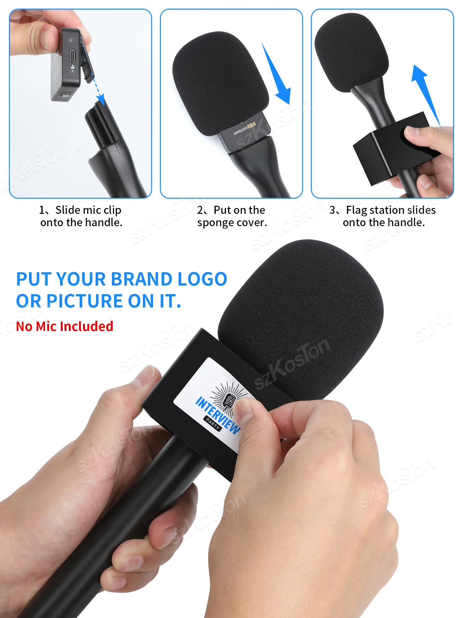 Bandera de micrófono extraíble y personalizable: la bandera del micrófono se puede quitar fácilmente y conectar de forma segura, asegurando que permanezca en su lugar. Puede personalizarlo agregando pegatinas de logotipos personalizadas, como el emblema de su canal, para mejorar el aspecto profesional de sus grabaciones.