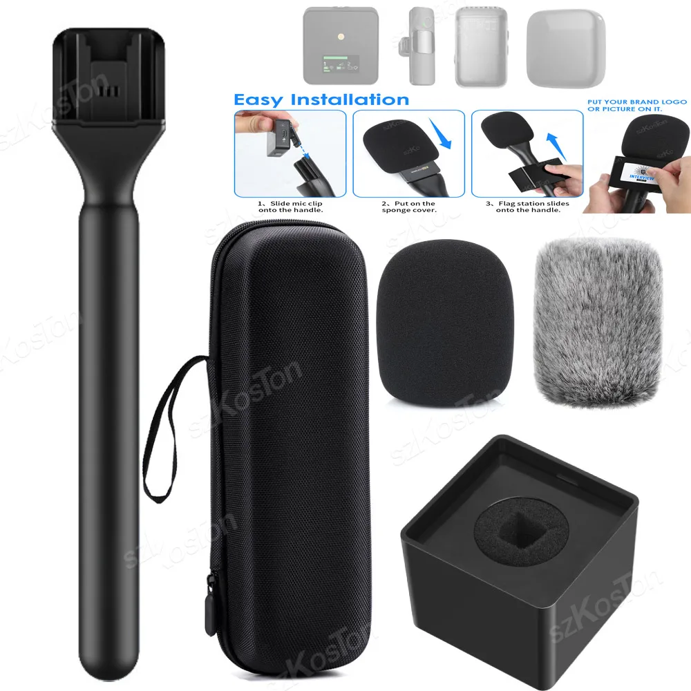 Comprar Mango de micrófono para DJI Rode, soporte de micrófono inalámbrico GO para entrevista con caja de espuma para parabrisas, adaptador de mano para micrófono Lavalier para TikTok