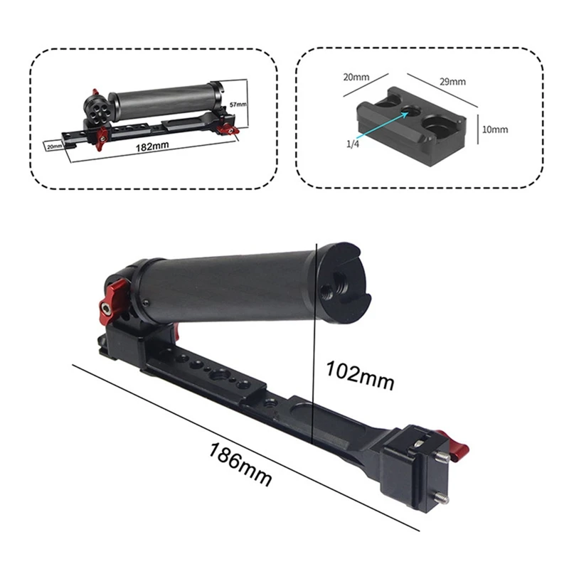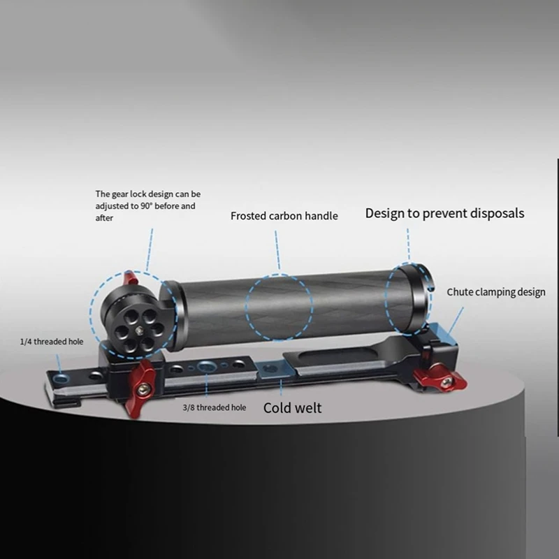 4. Rica en expansión, el mango proporciona orificios de posicionamiento Arri británicos 1/4, Boca de zapata fría, conveniente para la expansión de accesorios como luces de relleno, micrófonos y monitores