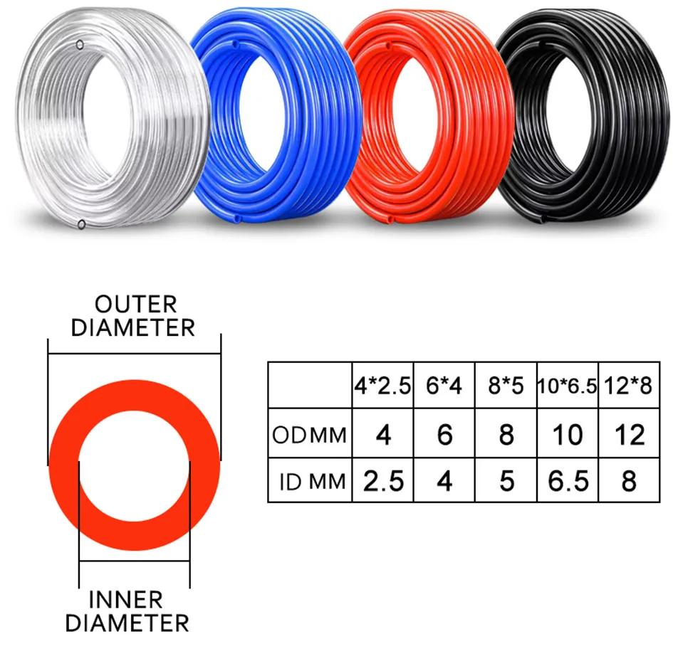 Manguera de aire neumática de 10M/20M/50M/100M, tubo de plástico de 4mm, 6mm, 8mm, 10mm, 12mm, manguera de aire, tubo de poliuretano para compresor