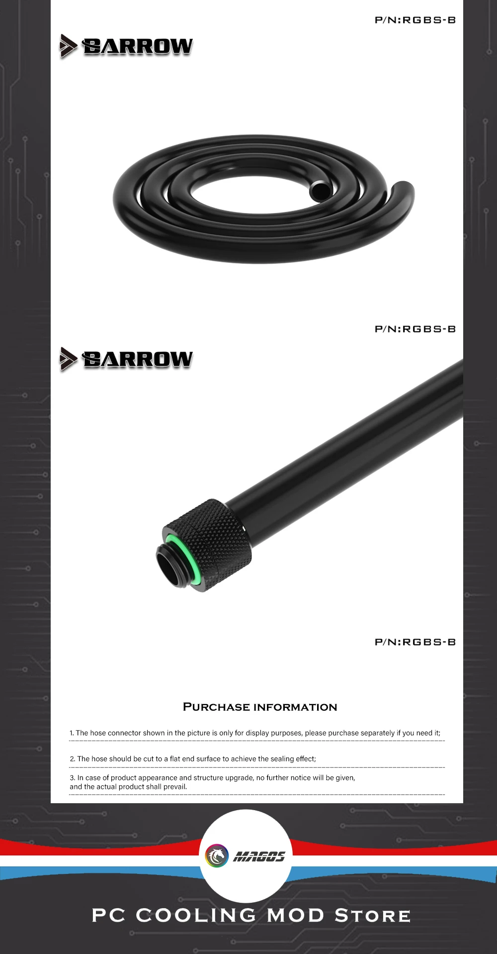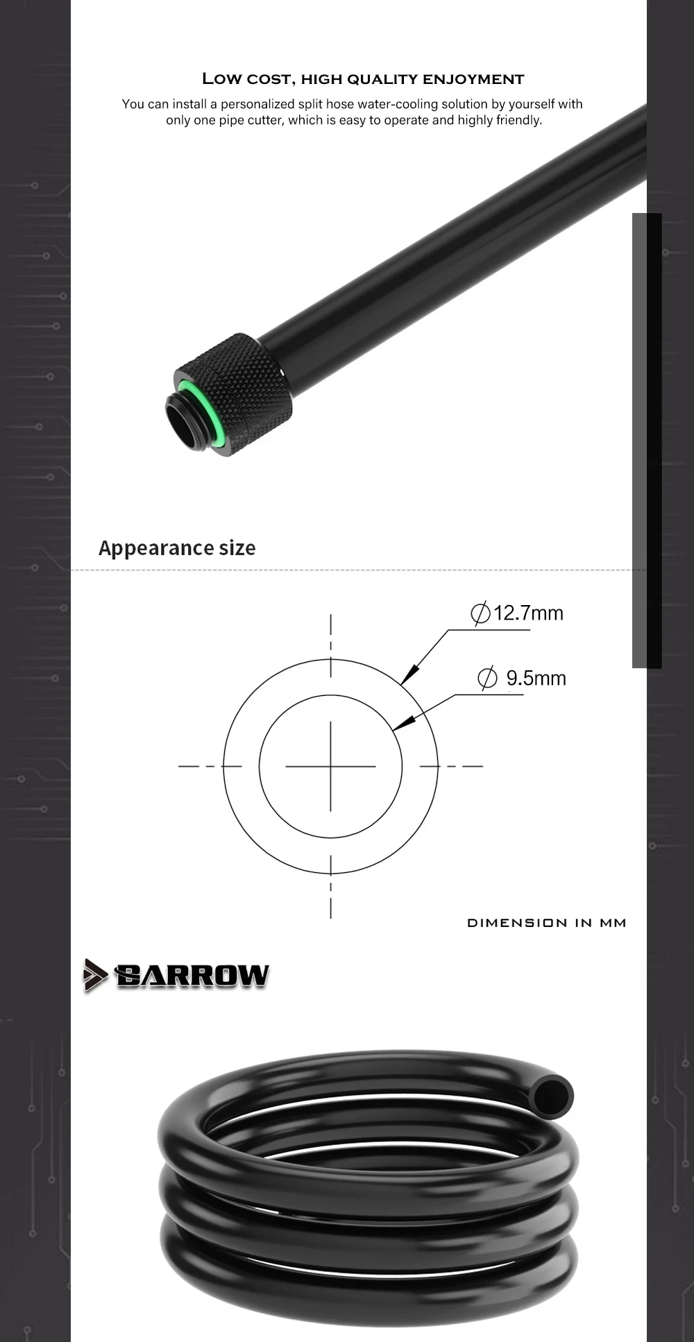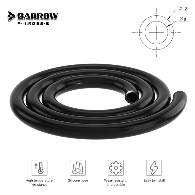 Manguera de silicona Barrow, ID negro, 9,5mm OD, 12,7mm (3/8'-1/2 '), tubo flexible, caja de ordenador DIY dividida para PC, RGBS-B de refrigeración por agua