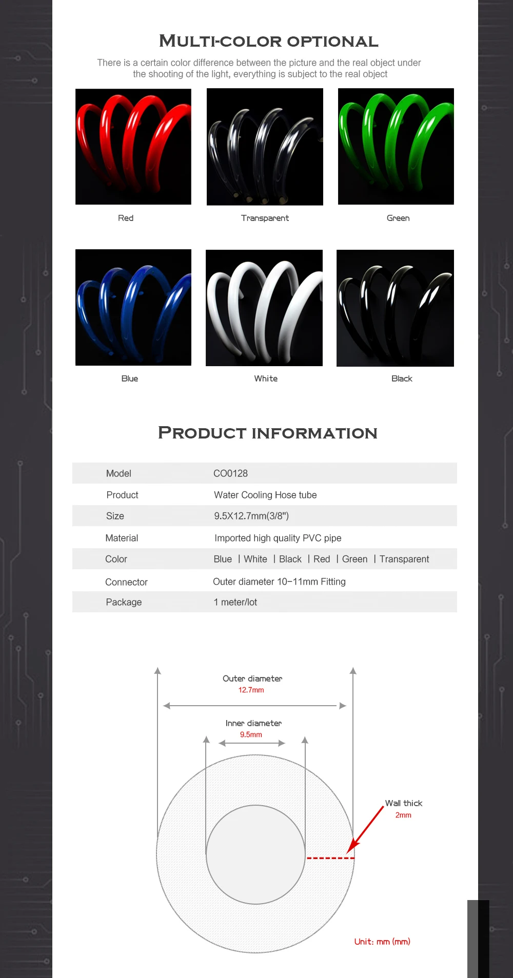 Manguera suave de 1M, 9,5mm * 12,7mm, tubo suave de PVC, transparente ID10/13MM, enfriador de agua de tubo Flexible de un metro, azul, blanco, negro y rojo