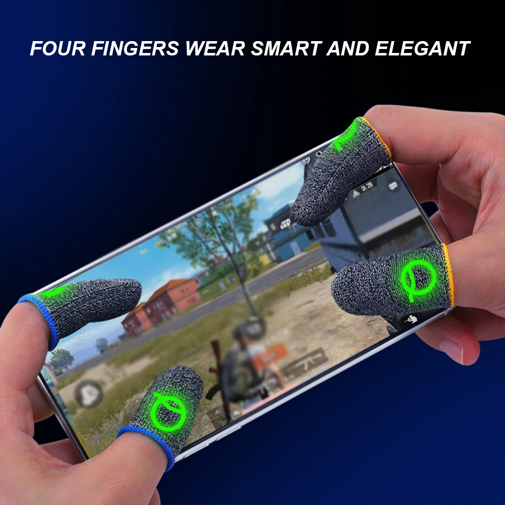 Comprar Manguitos luminosos para videojuegos, guantes de nailon antideslizantes para pantalla táctil, fibra de carbono, borde amarillo, 2 piezas