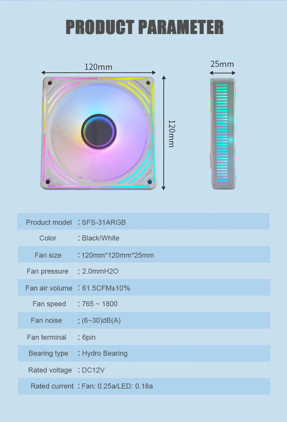 Comprar MANMU-ventilador Rgb para caja de ordenador, para juegos de pc, 120mm, refrigeración para juegos, ventilador de Cpu, caja de espejo Argb, ventiladores para pc
