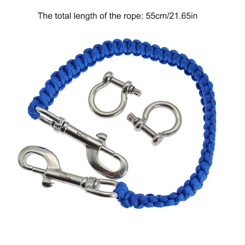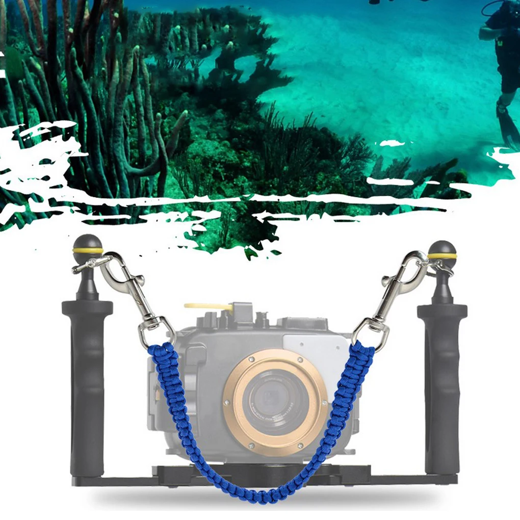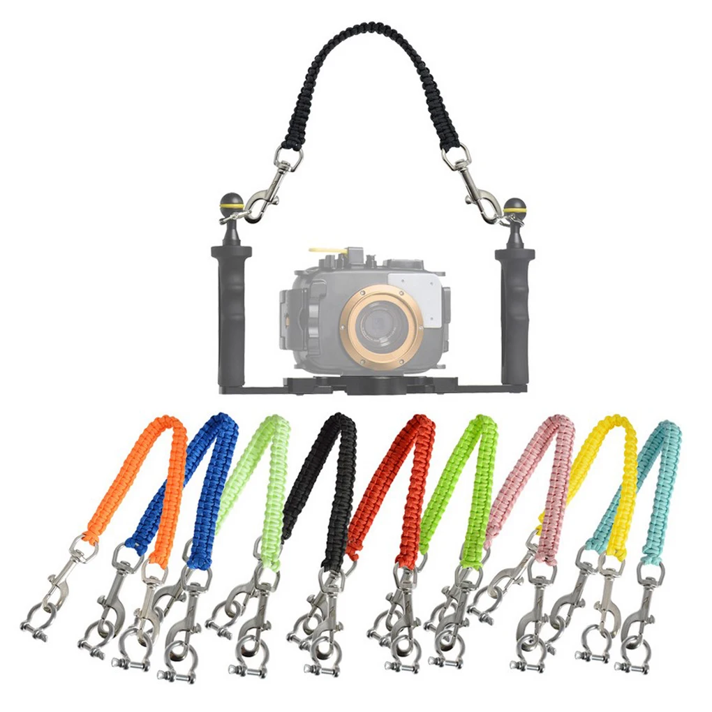 Con hebilla: Esta cuerda de cámara subacuática está equipada con una hebilla de acero inoxidable, que es resistente a la corrosión y gira 360 grados.