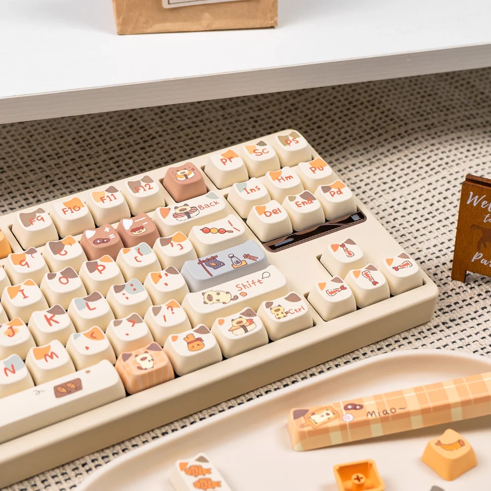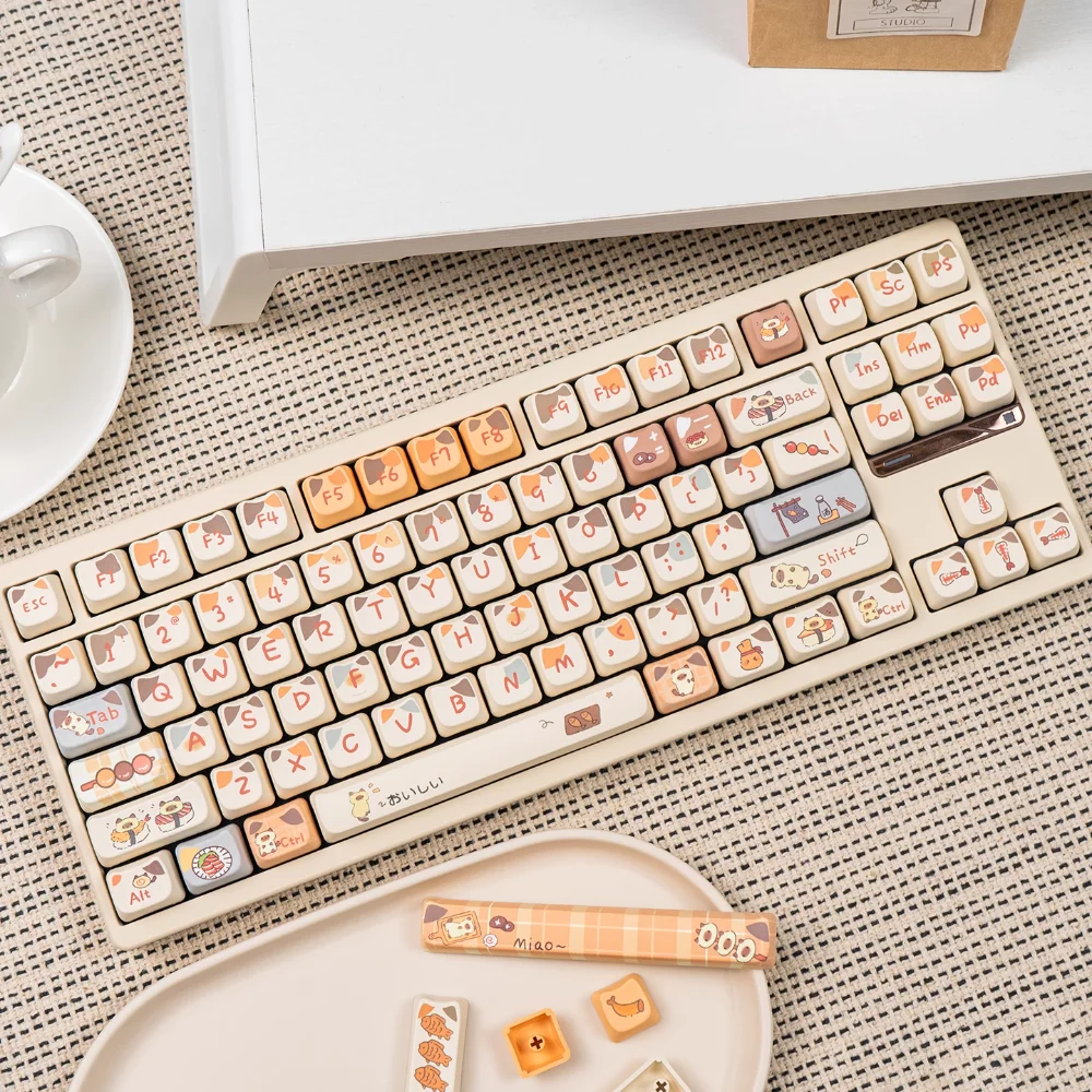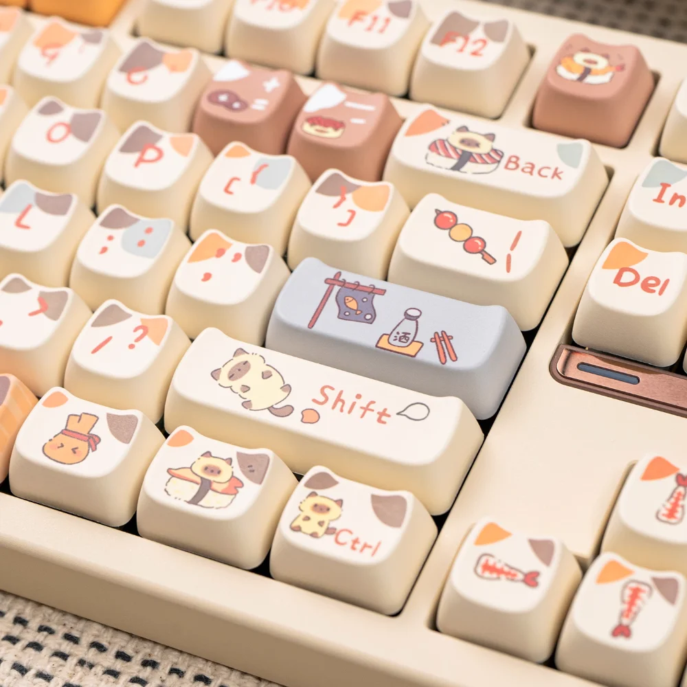Comprar MAO-Juego de teclas con forma de cabeza de gato, teclas PBT bonitas para chica, adecuadas para teclado mecánico MX Switch Wooting 61/64/68/75/84/96/104
