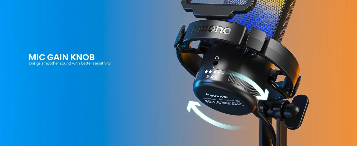 MIC GAIN CONTROL AND MONITORING - The gain control on this game streaming microphone allows you to customize the microphone's sensitivity so it can pick up sounds from various distances and volumes. By adjusting the mic gain, you can increase or decrease the USB microphone's sensitivity to suit your needs and the surrounding environment, ensuring that you capture clear and precise audio. To have real-time monitoring of your sound, plug headphones into the PC mic’s jack.