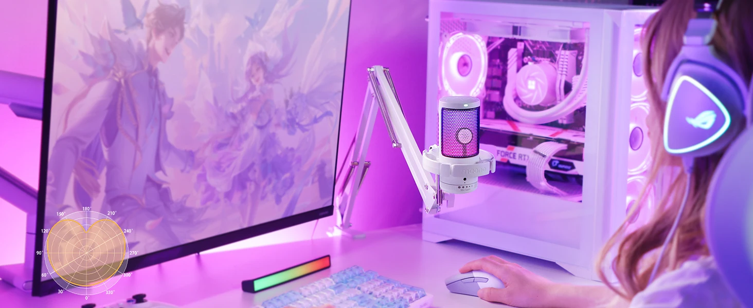 Maono Gamerwave DGM20S USB Microphone Gaming Mic Condenser Mic RGB Mic Noise Canceling Mic with Mic Gain,RGB Light,One key mute