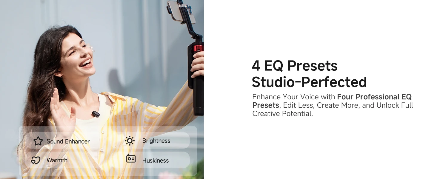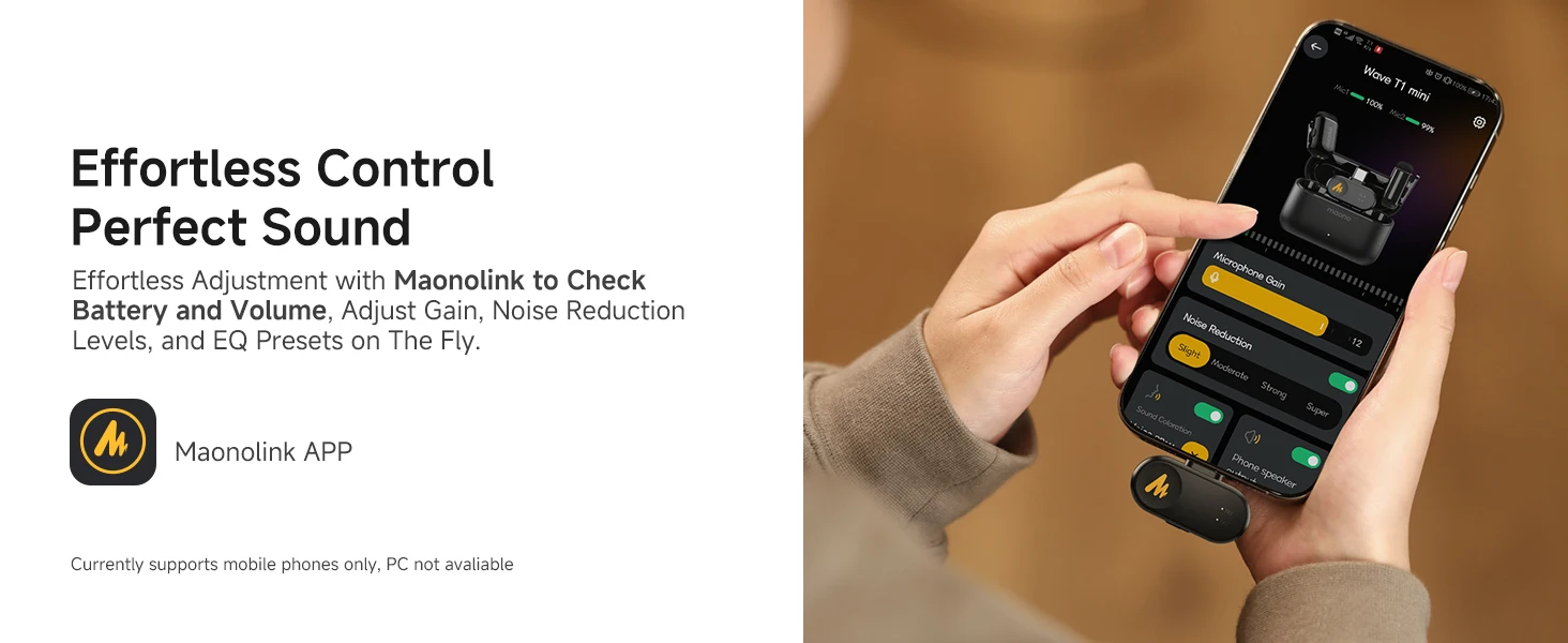 Con un rango de ajuste de ganancia de 32 dB, ajuste fácilmente el sonido para adaptarlo a su entorno, asegurando una captura de audio clara y equilibrada a cualquier distancia con Maonolink.