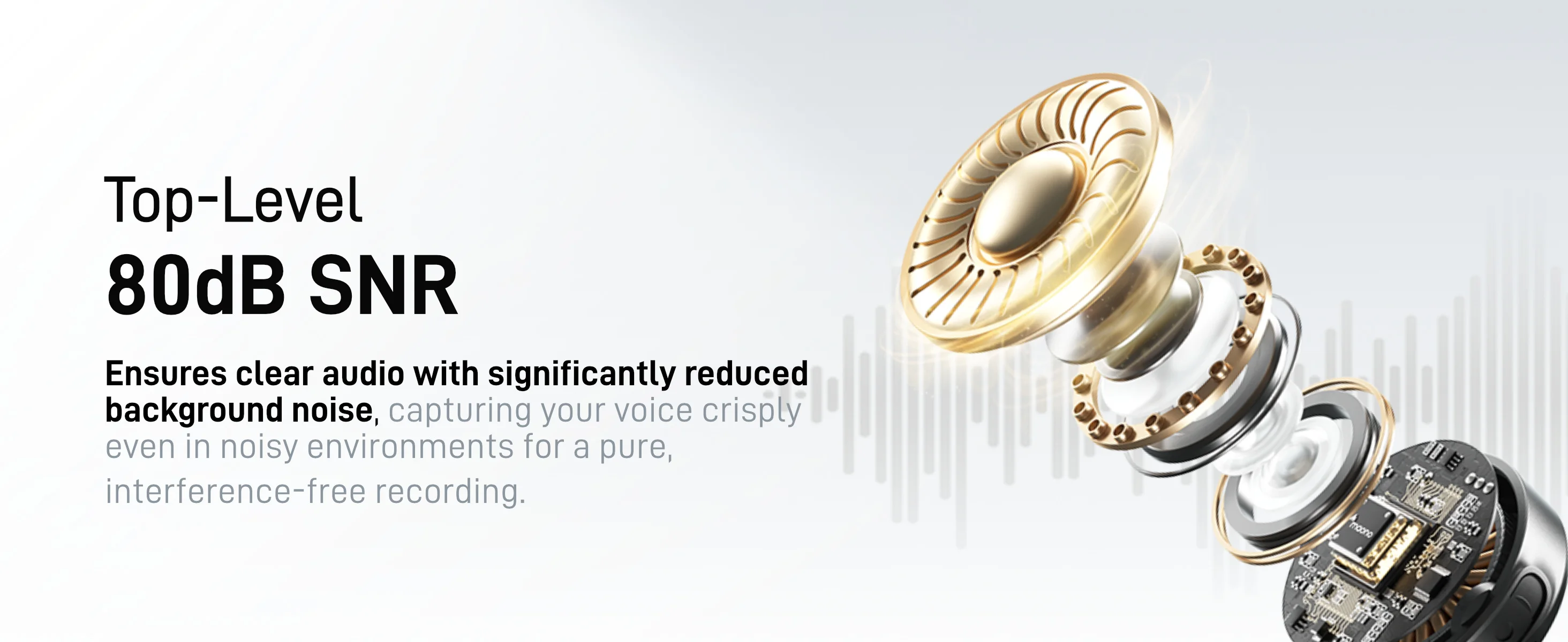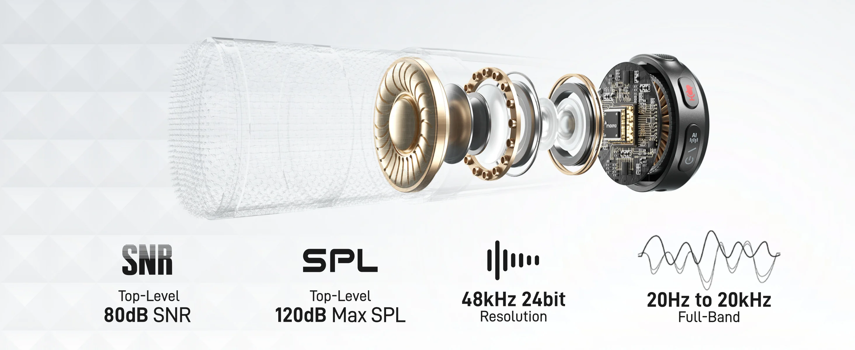 Calidad de audio de grado estudio: WAVE T5 ofrece la mejor relación señal-ruido de 80 dB de la industria, un nivel de presión de sonido máximo de 120 dB y un formato de audio de 48 kHz/24 bits, capturando detalles de sonido sutiles en diversos entornos con piso silencioso.