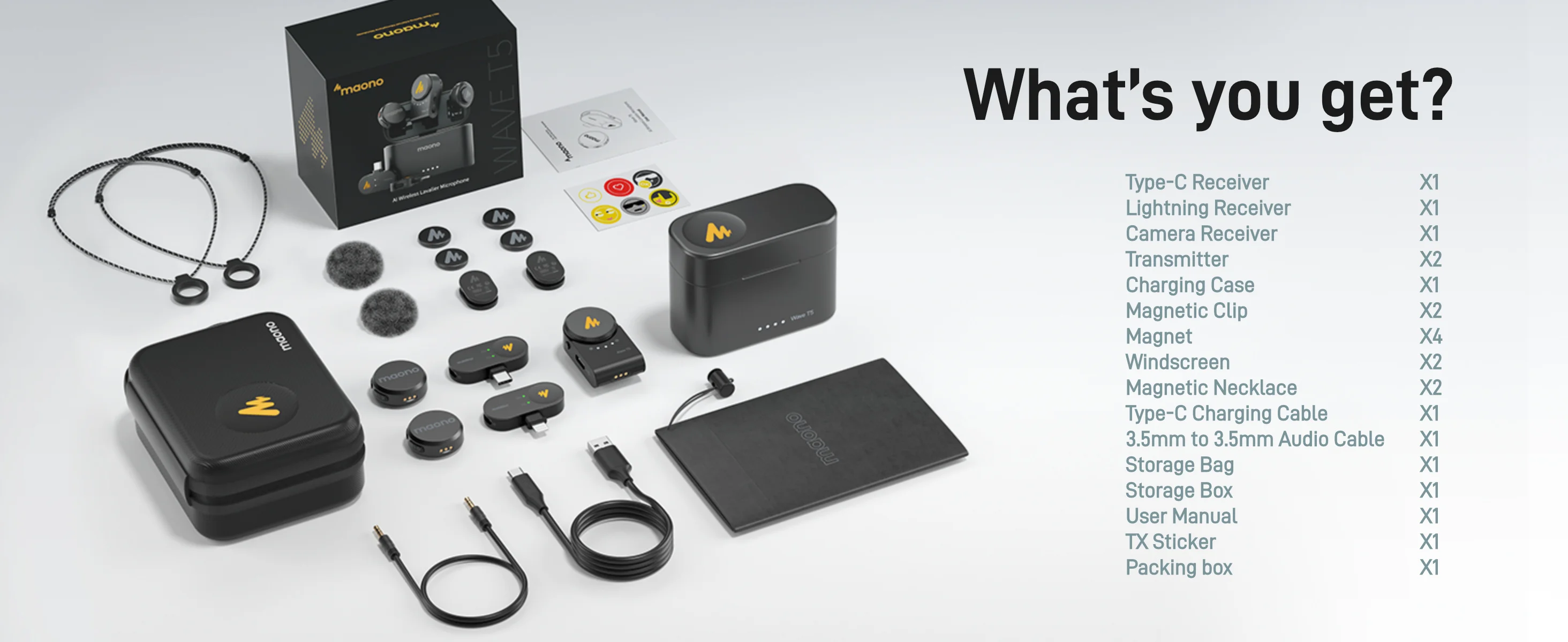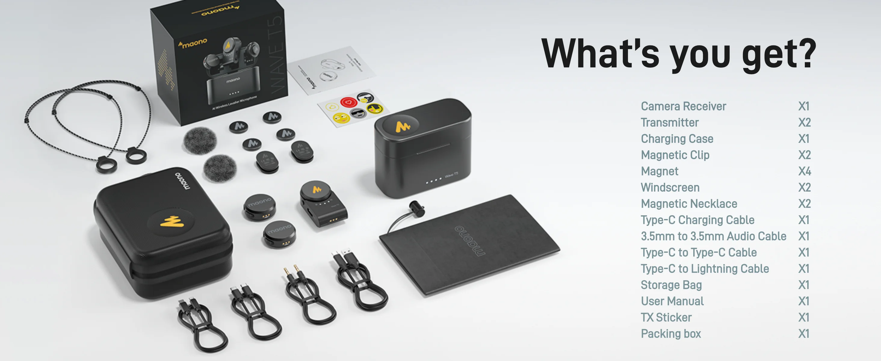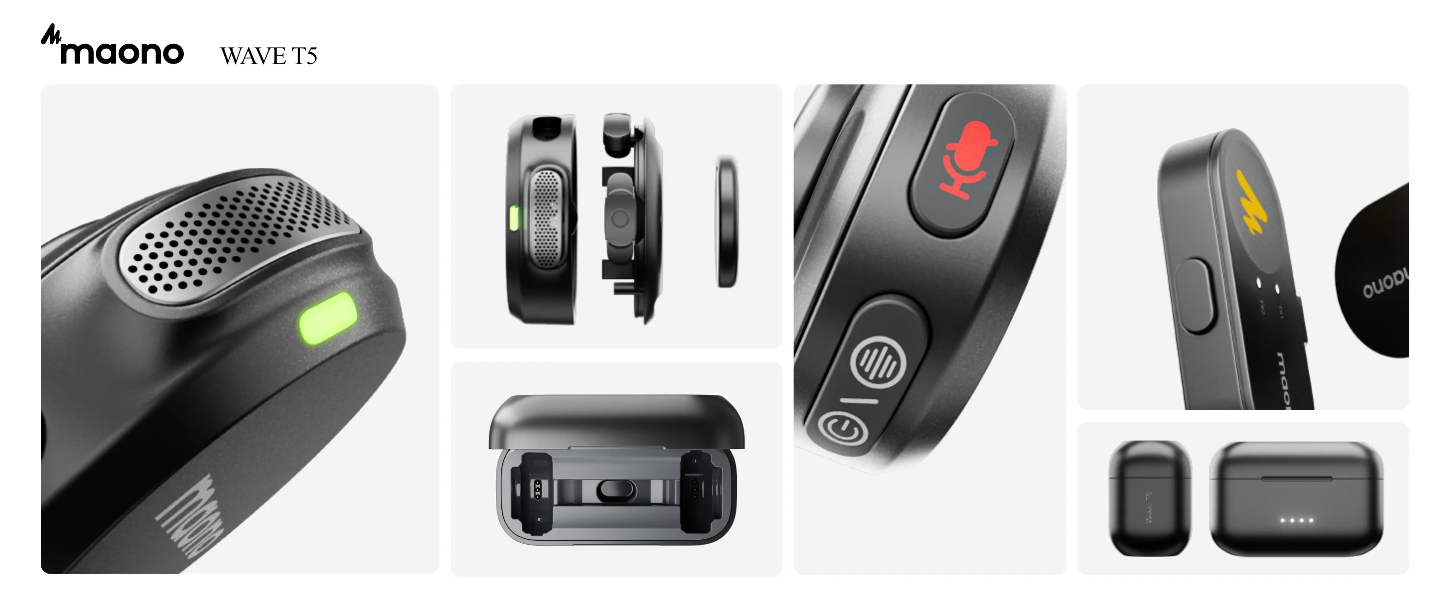 Micrófono inalámbrico de última generación para creadores: MAONO WAVE T5 con 9 g de peso y tecnología de vanguardia, pequeño pero potente.