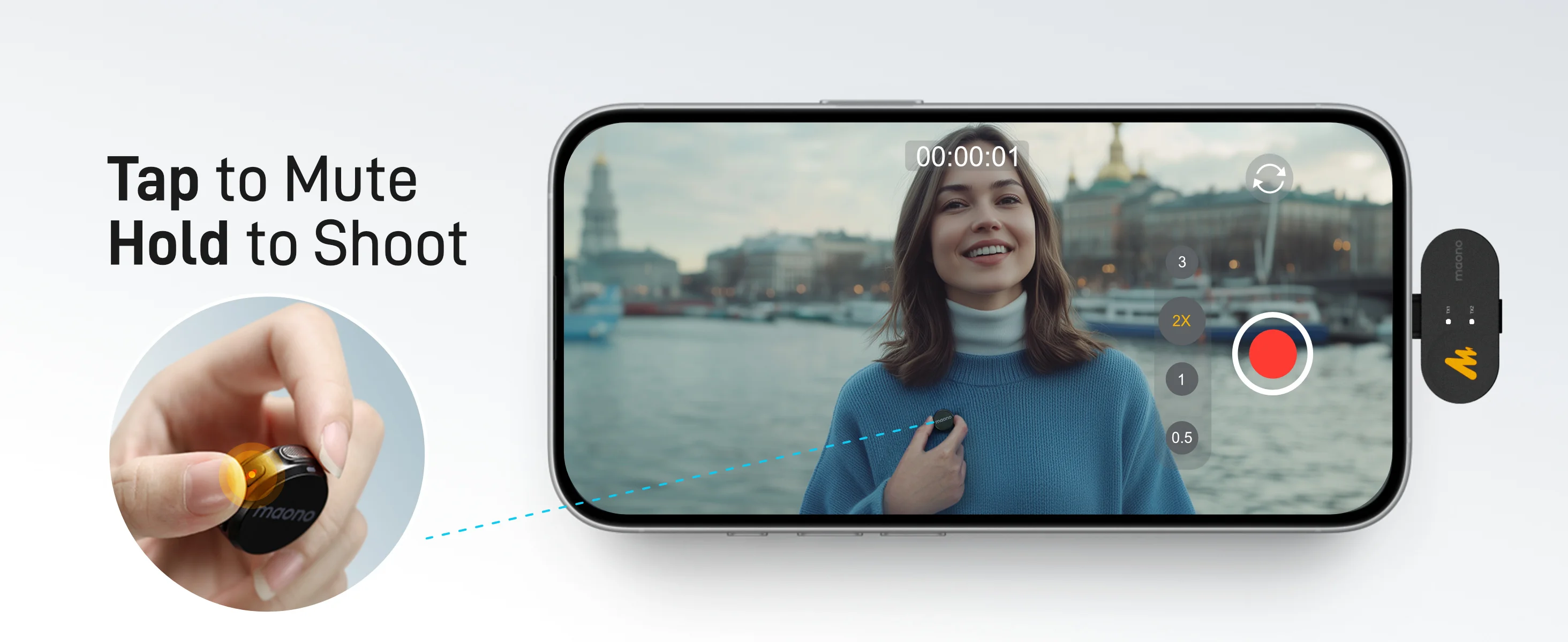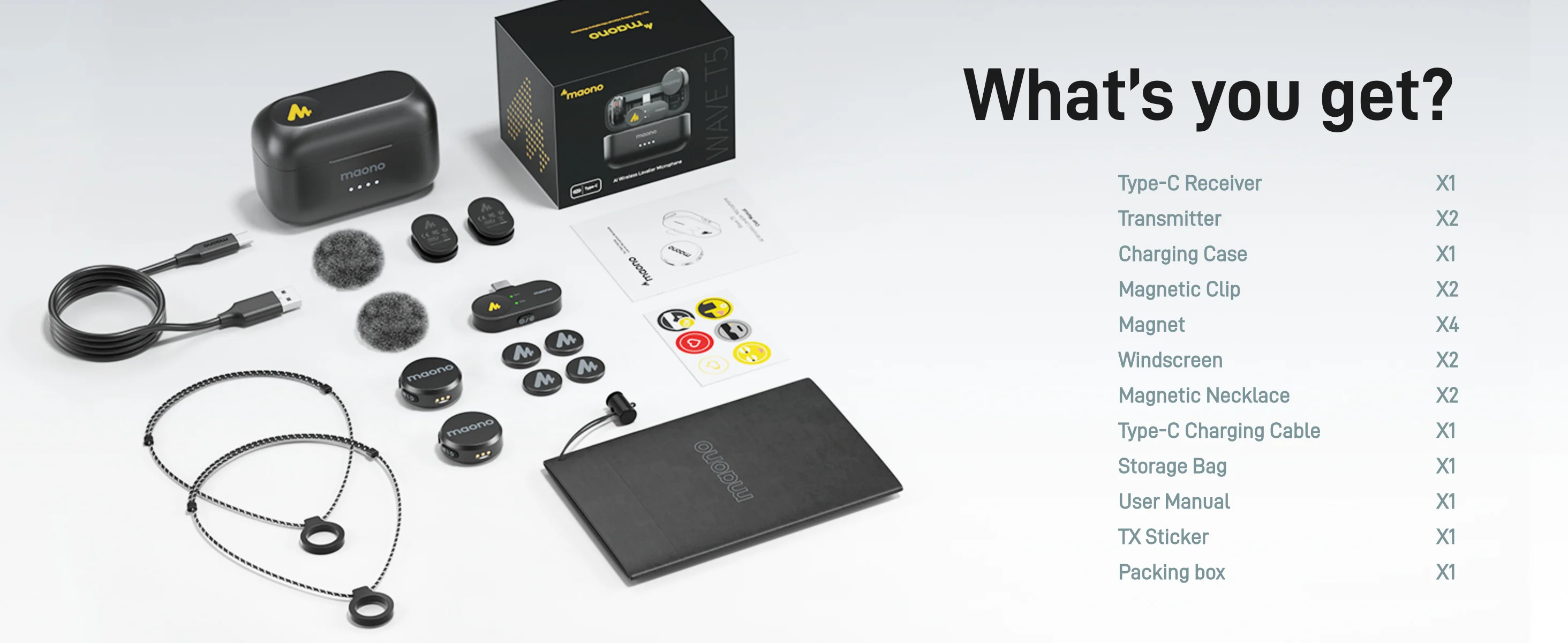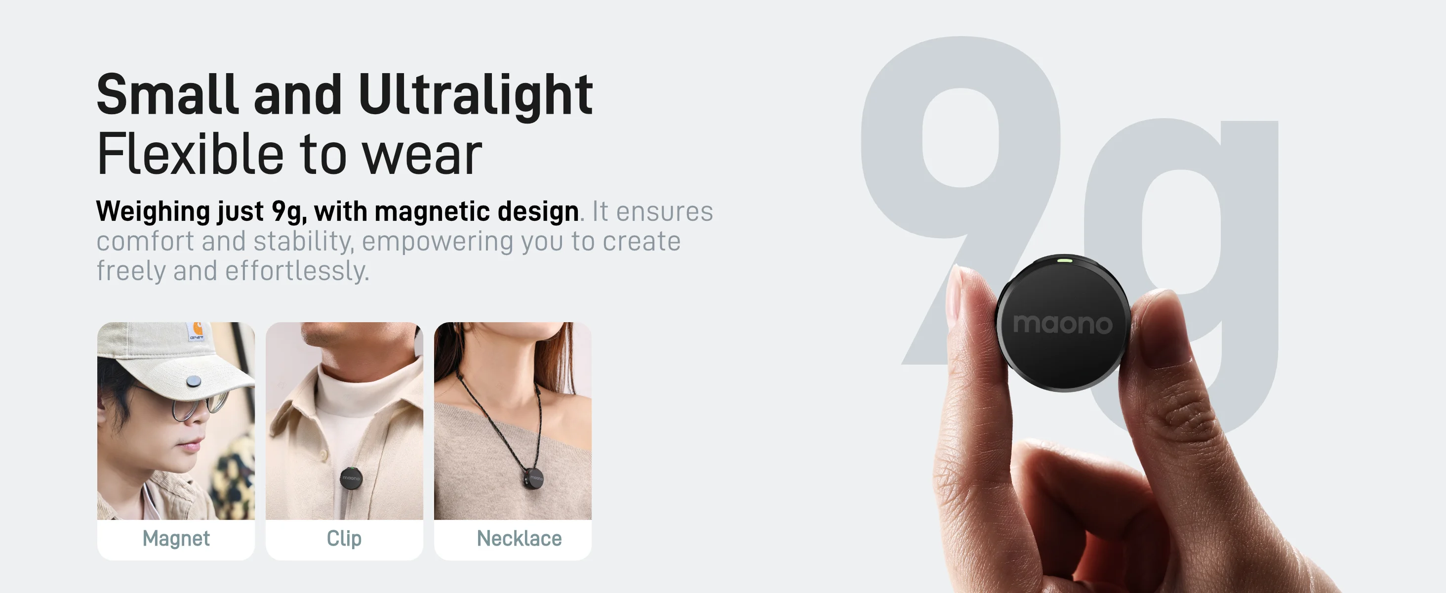 Micrófono inalámbrico de última generación para creadores: MAONO WAVE T5 con 9 g de peso y tecnología de vanguardia, pequeño pero potente.