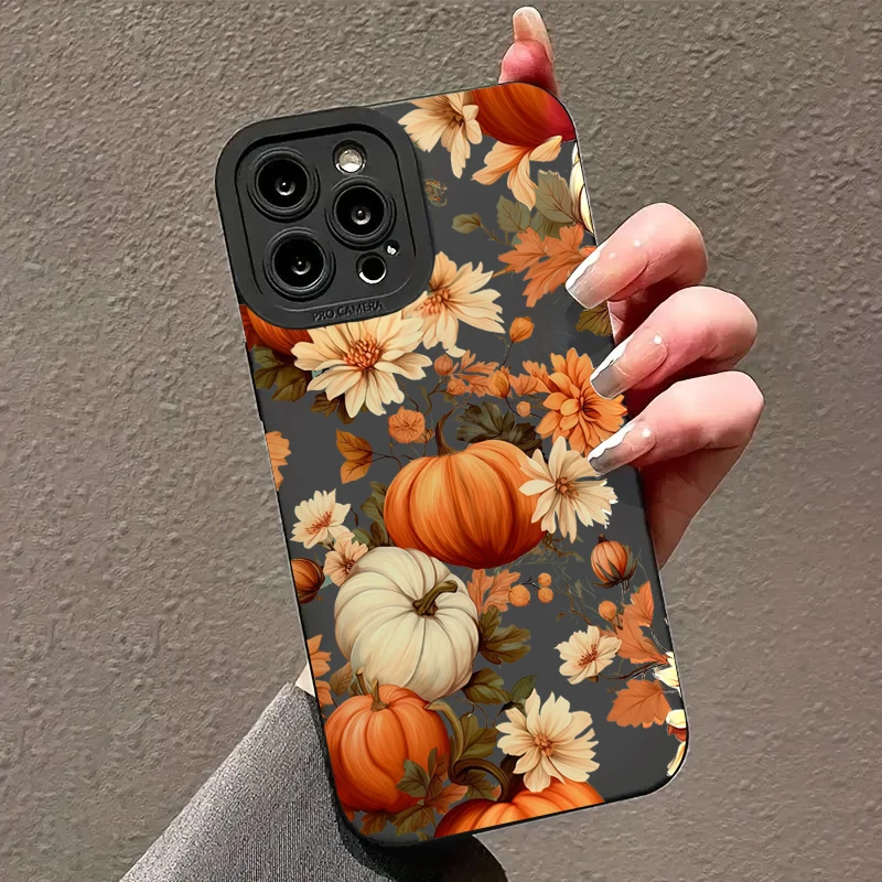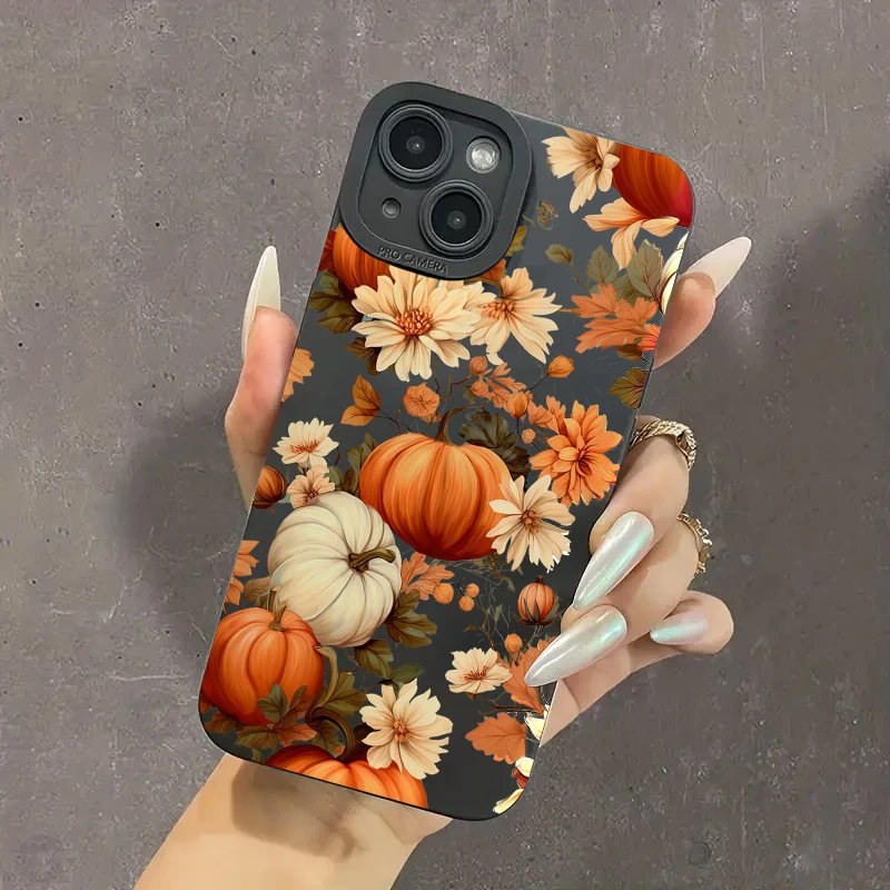 Maple Leaf Pumpkin Pattern Phone Case For iPhone 17 16 15 14 13 12 11 Pro Max 17 Air 16E XS X XR 7 8 Plus Shockproof Soft Cover