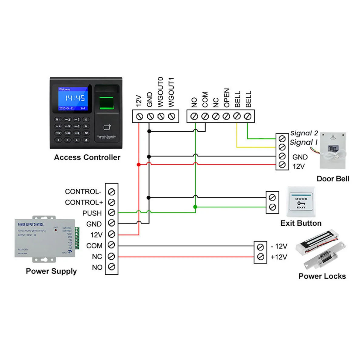 1) Pantalla TFT a color de 1,8 pulgadas. 2) Siga estrictamente el estándar de producto de seguridad nacional. 3) La Adopción del sensor de huellas dactilares de ahorro de energía y la función de administración de energía, hace que el producto sea perfecto. 4) 3 métodos para identificar la asistencia: huella dactilar, contraseña, tarjeta RFID. 5) Admite la descarga de carga de la unidad Flash USB. 6) Recordatorio de indicación de idioma humanizado. 7) Adecuado para las entradas y salidas de la Oficina, fábrica, hotel, escuela, etc. 8) T9 Editores de métodos de entrada, en el nombre de la máquina, Departamento, frecuencia y otra información, se pueden generar informes de asistencia directamente, la operación del usuario es simple 9) Admite el idioma inglés. 10) Tiene entrada/salida Wiegand 26/34, salida de relé, botón de timbre de puerta. 11) Admite función de alarma de manipulación. Se puede utilizar como teclado de control de acceso independiente, abra la puerta con la huella dactilar, la contraseña o las tarjetas RFID. Además, se puede utilizar como una máquina de asistencia de huellas dactilares, puede descargar los datos de asistencia con el disco U. Debido a los diferentes lotes, puede haber diferencias en la apariencia del producto, el color y el texto impreso, lo que no afectará el uso. La máquina de control de acceso de huellas dactilares es un dispositivo terminal de control de acceso de huellas dactilares simple y fácil de usar que se puede instalar en áreas sensibles que requieren autorización para ingresar, e innovador combina el reconocimiento de huellas dactilares de alta seguridad con la gestión avanzada del control de acceso para lograr el acceso Gestión de control de alta seguridad. Con este registrador de tiempo de huellas dactilares, puede hacer que su personal se registre mediante huella dactilar, tarjeta RFID y contraseña. Admite 1000 de capacidad de usuario, 1000 huellas dactilares, 1000 contraseña, 1000 tarjetas RFID, 100000 de capacidad de registro de tiempo de asistencia. Color: negro Material: plástico Tamaño: 90x90x28mm Contenido del paquete: 1 x máquina de asistencia de huellas dactilares 10 x tarjetas Solo el contenido del paquete anterior, otros productos no están incluidos. Nota: El reflejo de la luz y las diferentes pantallas pueden hacer que el color del elemento en la imagen sea un poco diferente del real. El error de medición permitido es +/- 1-3cm.
