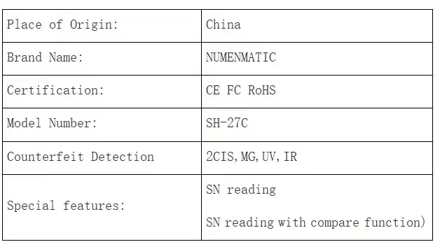 Máquina de clasificación de billetes de bolsillo 1 + 1, 2 + 1
