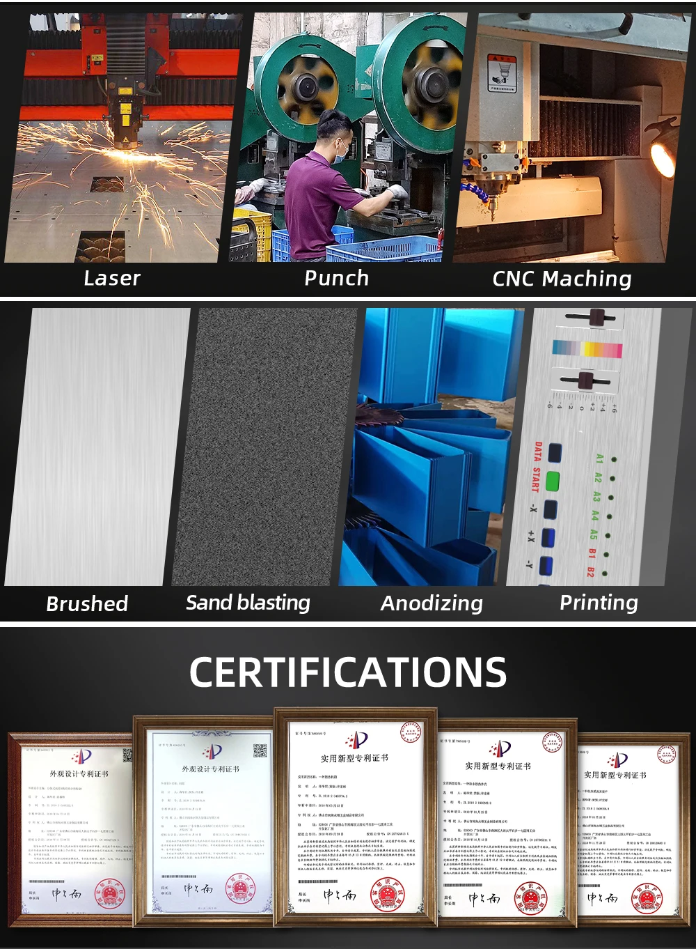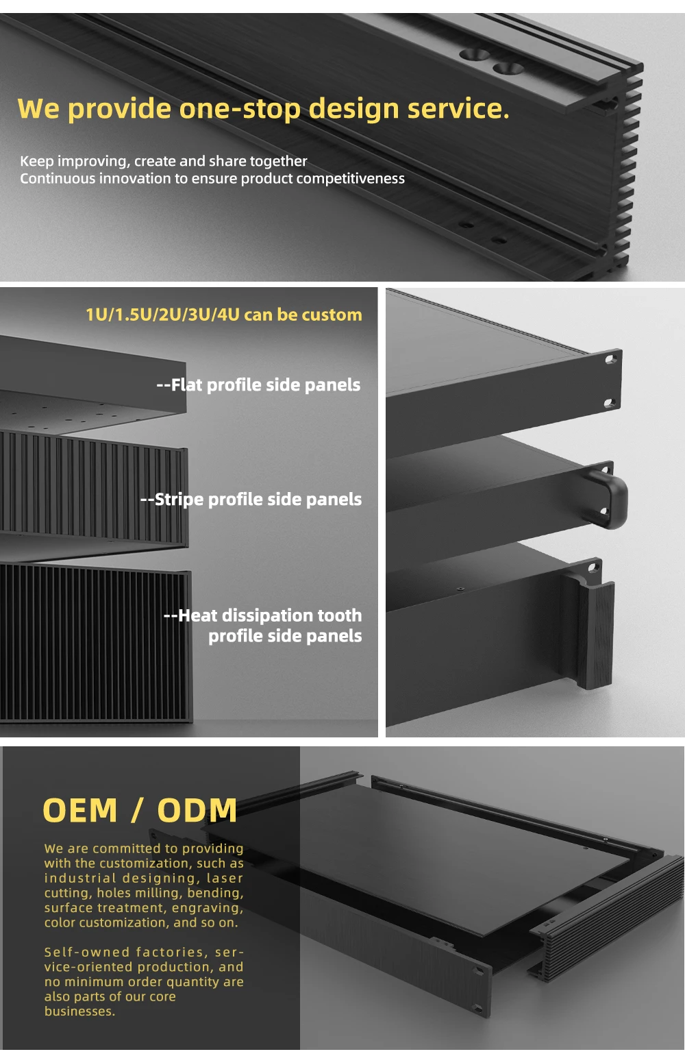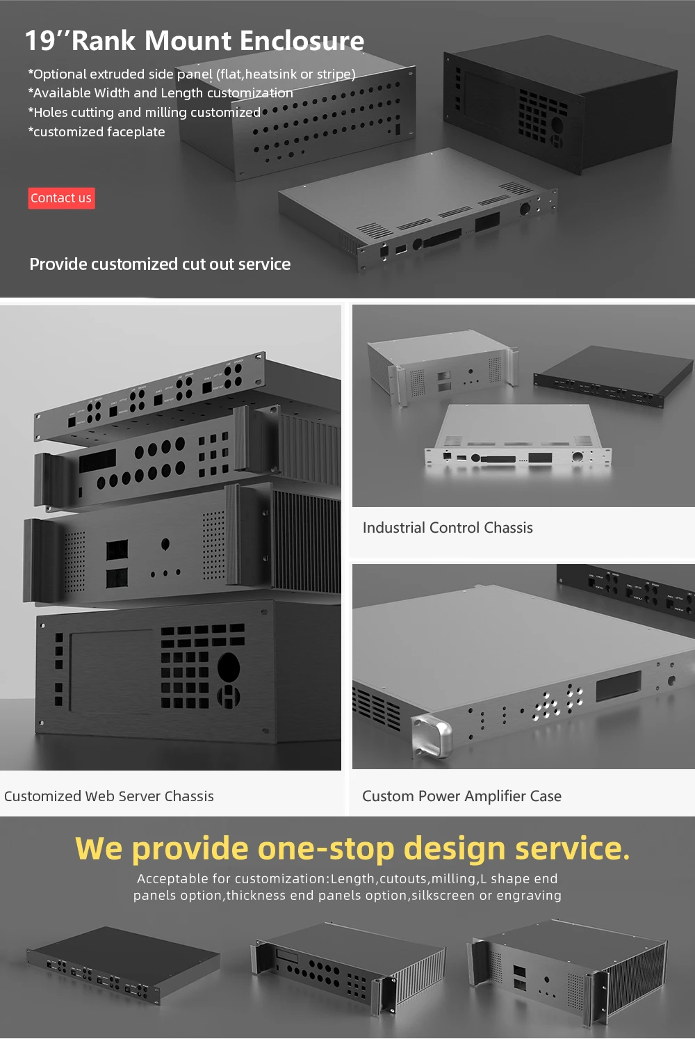 Controla un alto grado de tolerancia en el procesamiento de precisión cnC con material de aluminio en bruto de buena calidad con una amplia gama de aplicaciones, podríamos ofrecer 1U/1.5U/2U/3U/4U, disponible a medida.