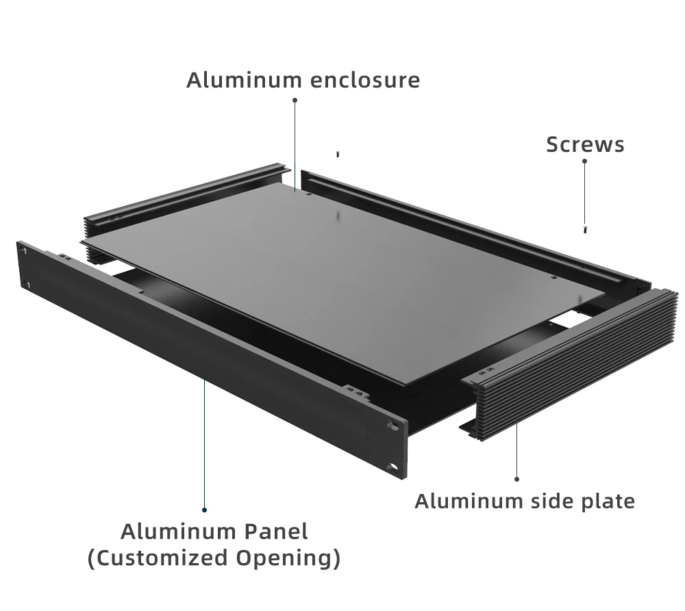 1. panel lateral extruido opcional (plano, disipador térmico o raya)