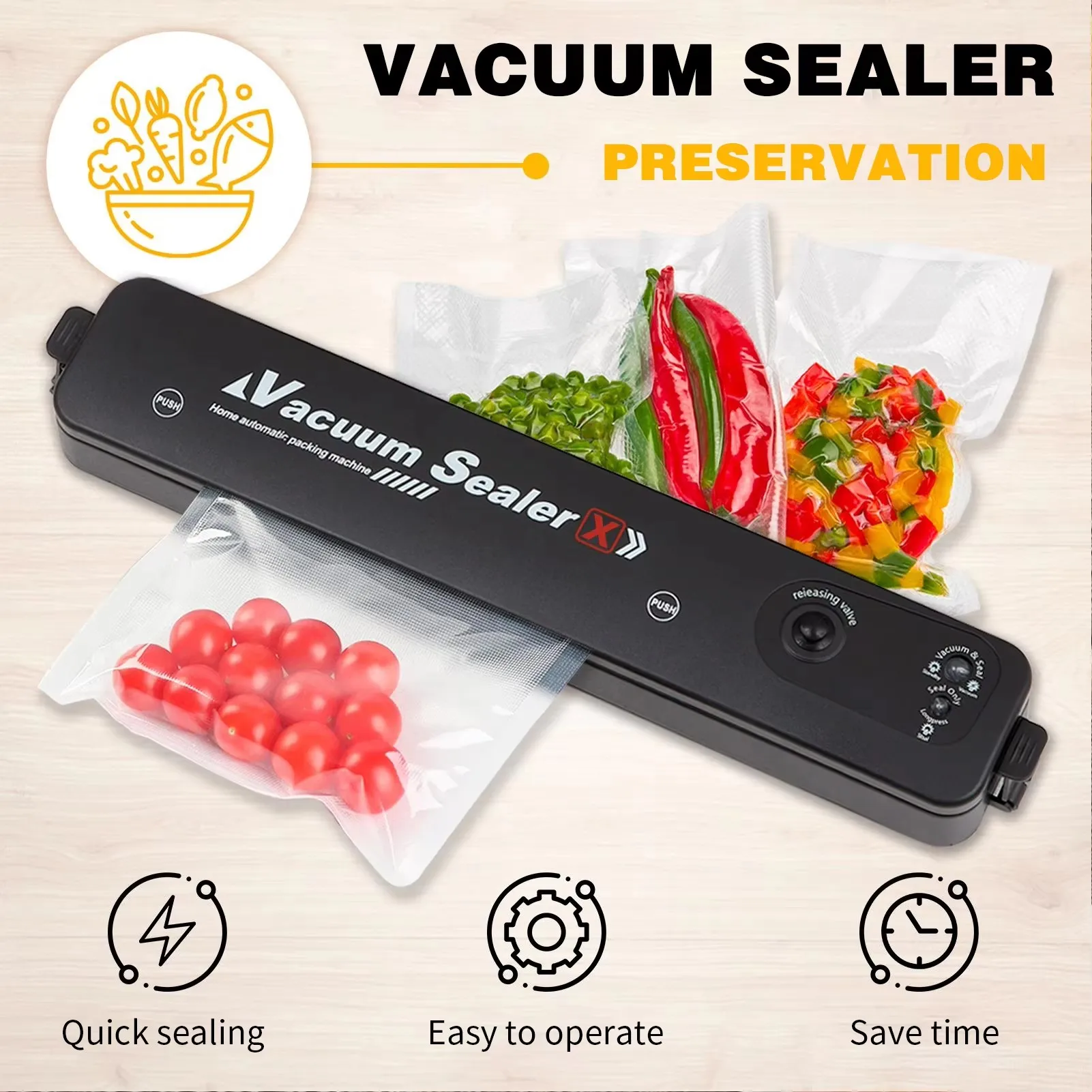 Comprar Máquina de envasado al vacío, sellador al vacío de alimentos, bolsas de vacío para el hogar, máquina de sellado de alimentos al vacío, herramientas de almacenamiento de alimentos