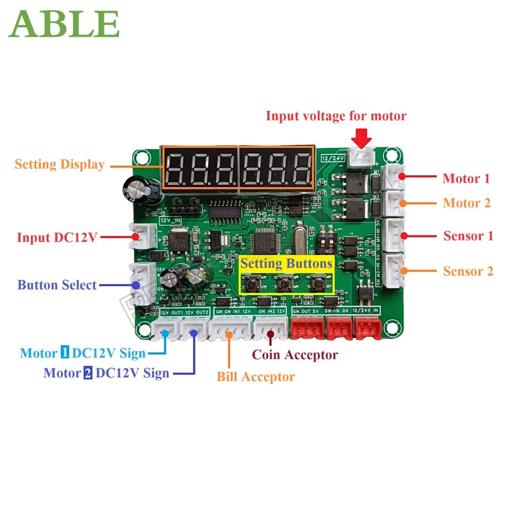 Esta es una placa base de máquina de intercambio de monedas. Si el cliente no necesita el botón de inicio y el botón de pausa, también se puede utilizar como placa base de la máquina expendedora de agua;