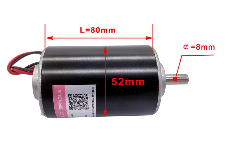 Parámetros del productoMotor de husillo: motor de cepillo DC negro de electroforesisVoltaje de funcionamiento: 12-48vdcPotencia: 200WCorriente de arranque: 5ACorriente de rotor bloqueada: 20AVelocidad: 3000-12000r/MIN (12V-3000RPM, 24V-6000rpm, 36V-9000rpm, 48V-12000rpm)Par: 280MN. MResistencia de aislamiento: 2 MegaOhmiosFuerza dieléctrica del aislamiento: 400VDiámetro: 52mmLongitud del cuerpo del motor: 80mmEste enlace solo incluye el motor del husillo, si necesita una varilla de corte o un mandril de resorte, haga clic en la imagen para comprar
