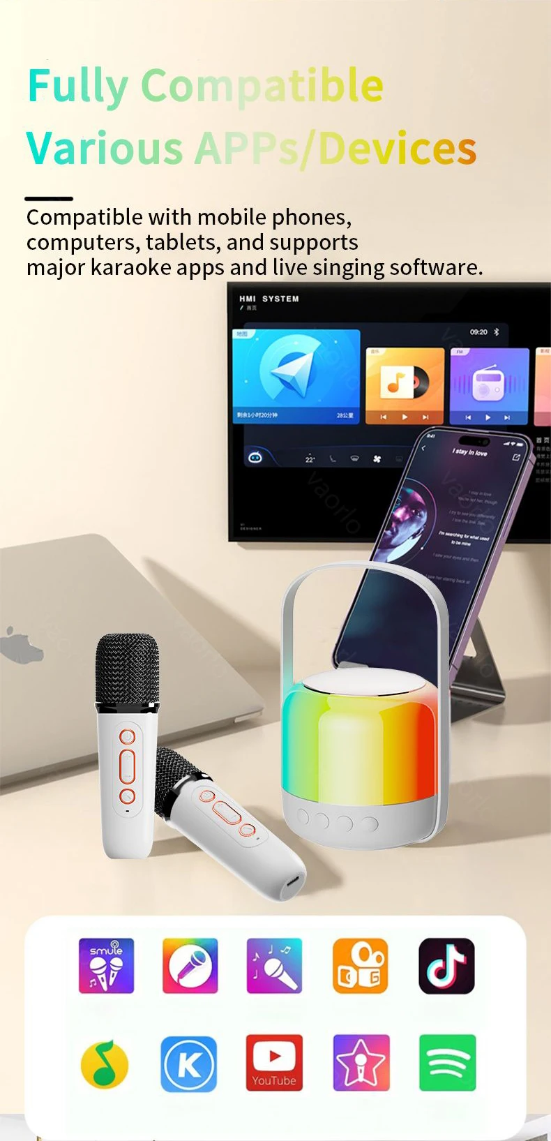 ● Compatible con teléfonos móviles, ordenadores, tabletas y admite las principales aplicaciones de karaoke y software de canto en vivo.