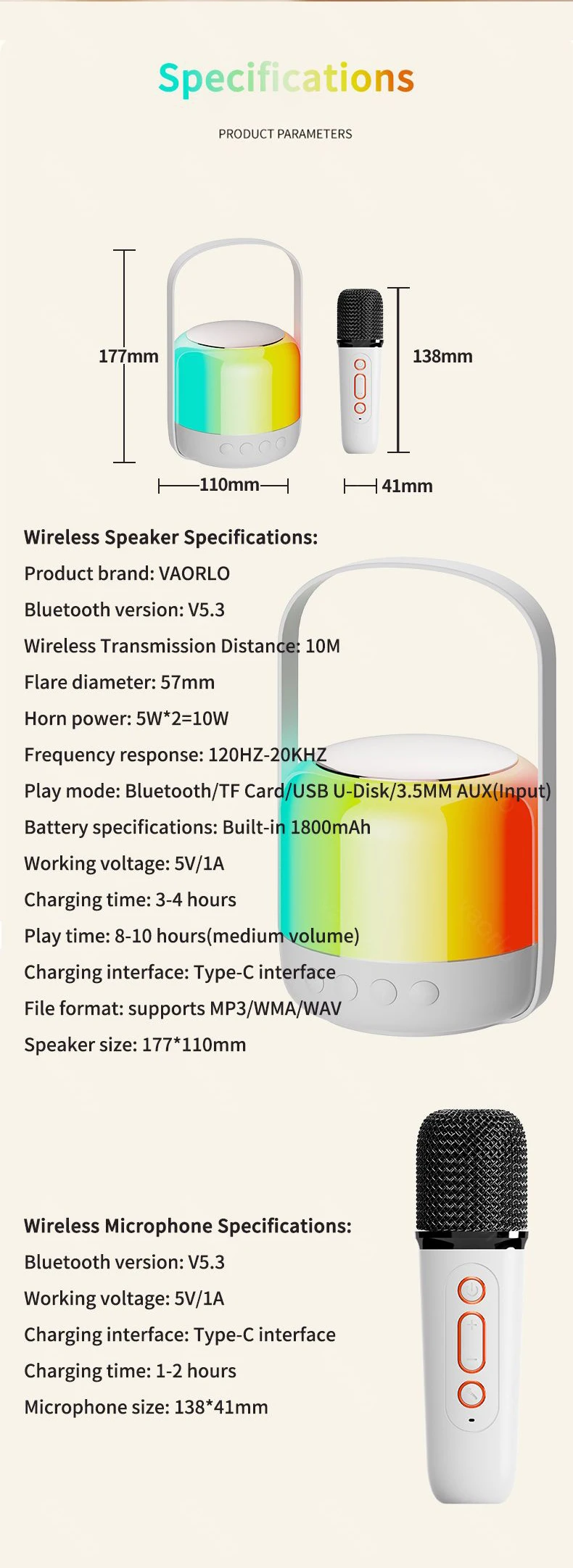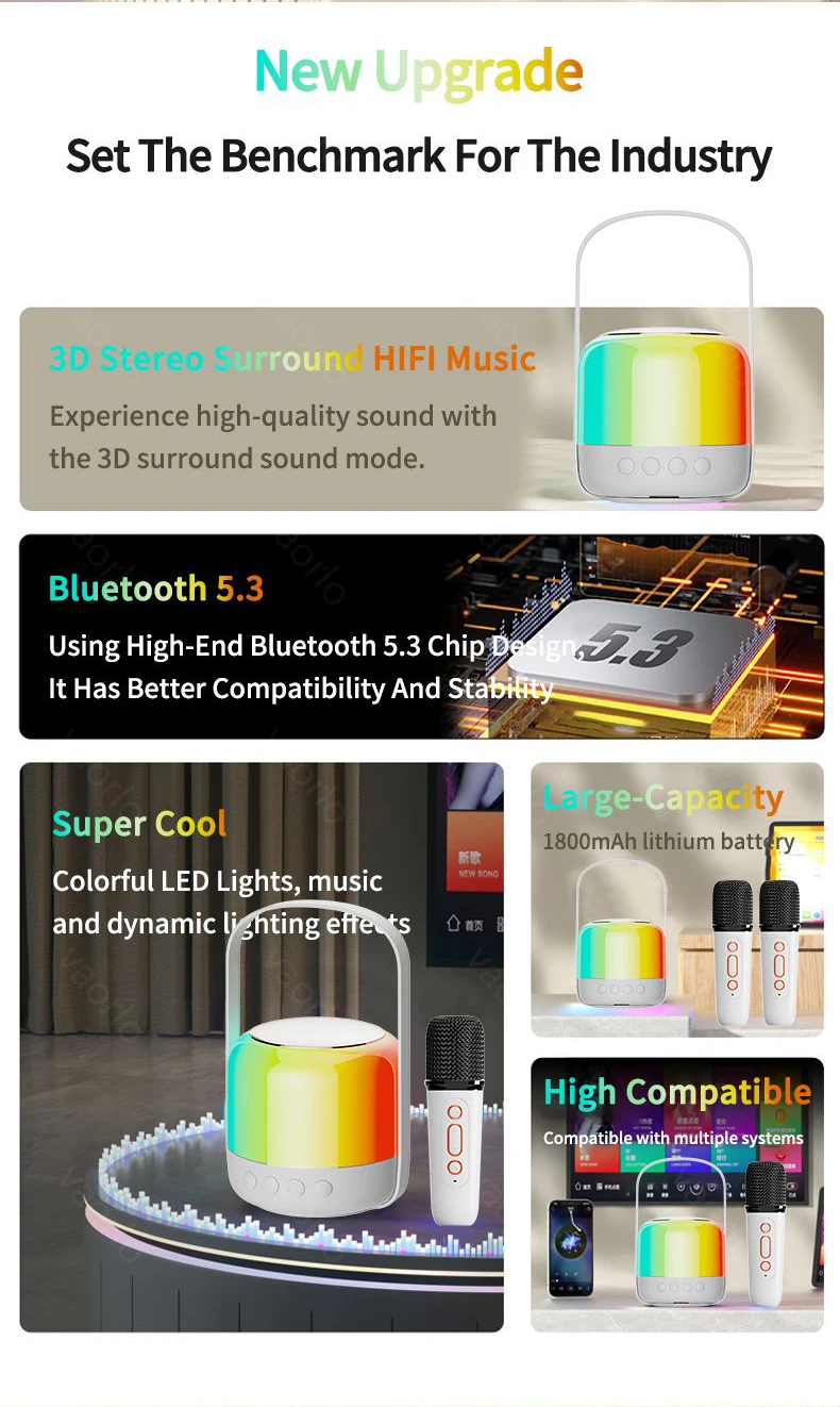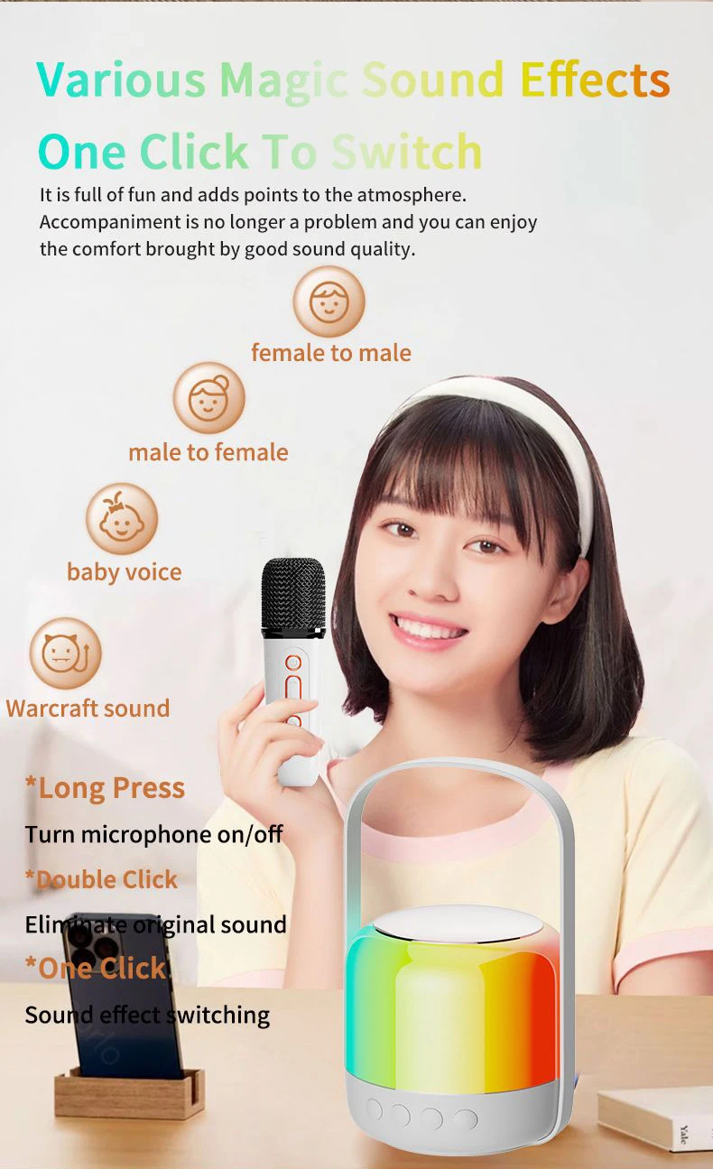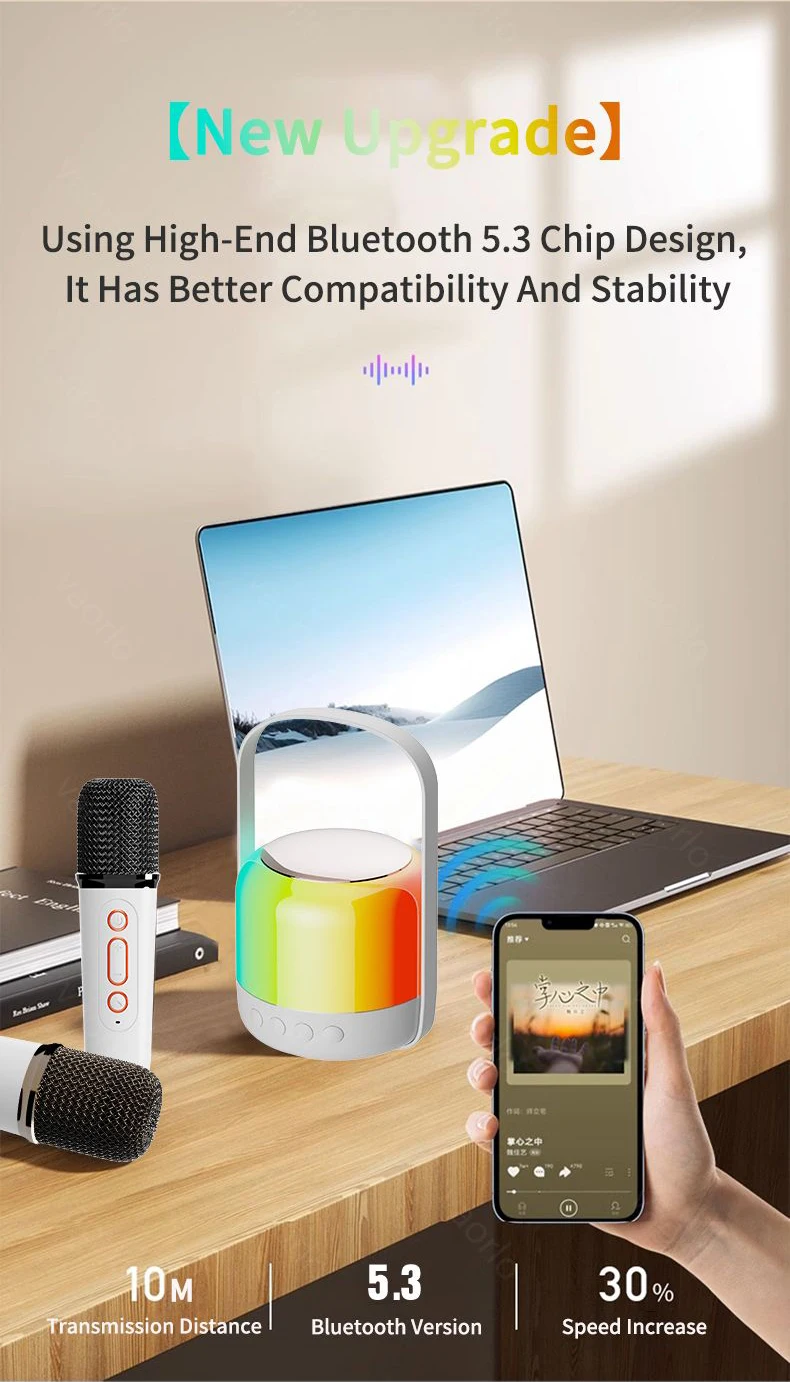 ● Bluetooth 5,3, micrófono de karaoke inalámbrico, su maestro de afinación exclusivo, Bluetooth/TF/USB U-Disk/3,5 MM AUX (entrada), Aplicación de karaoke multiescena.