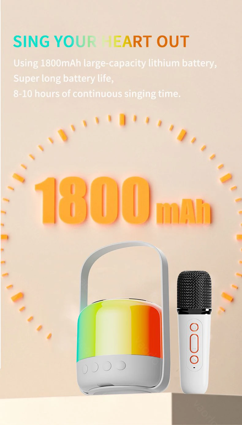 ● 1800mAh, batería de litio de gran capacidad, 8-10 horas de tiempo de canto continuo.
