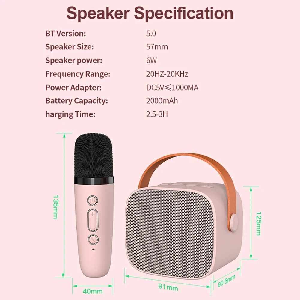 Una mini máquina de karaoke con una apariencia elegante y un funcionamiento sencillo para que disfruten tanto niños como adultos.El altavoz Bluetooth está equipado con un controlador de audio de alto rendimiento y un procesador de señal digital avanzado, que hacen que el sonido sea más claro y evita la molesta retroalimentación del micrófono.