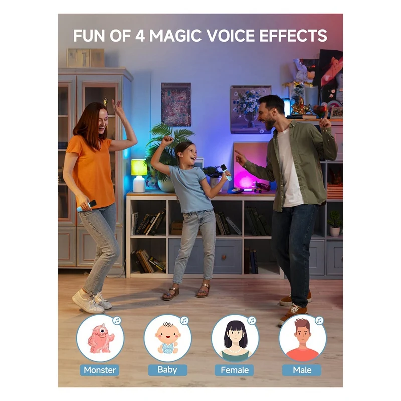 [Máquina de karaoke multifunción] La mini máquina de karaoke para niños y adultos con 2 micrófonos adopta el nuevo bluetooth 5.La tecnología 3 garantiza el emparejamiento instantáneo, proporcionando una transmisión estable y una conexión de larga distancia de 32 pies.Hay 4 efectos mágicos de voz: monstruo, bebé, mujer, hombre, lo que aporta más diversión y felicidad a adultos y niños.