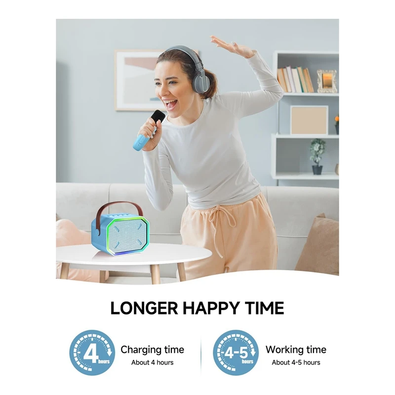 [Tiempo feliz más prolongado] La máquina de karaoke para niños incorporada con una batería recargable de 2000 mAh garantiza una hora de cantar de 4 a 5 horas.Carga más rápida, diseño duradero para que sea fácil llevar la fiesta a donde quiera que vaya, mayor tiempo de uso y más estable, haciendo que el canto sea más libre.