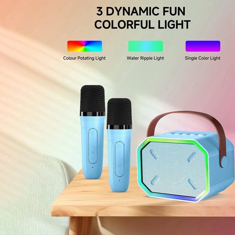 [Luz colorida divertida] La máquina de karaoke cuenta con 3 modos de iluminación que añaden un ambiente divertido y animado a tu fiesta.Un clic para activar el efecto de luz ambiental, las luces deslumbrantes golpean con el ritmo musical.