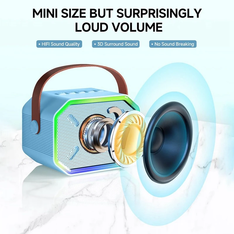 [Tamaño mini pero sorprendentemente volumen alto] La máquina de karaoke con diseño exquisito y compacto para que sea fácil llevar la fiesta a donde quiera que vaya.Pero este mini altavoz bluetooth adopta un altavoz HD de 6 W con chip de reducción de ruido, restaura altamente los detalles del sonido y hace que la voz sea completa y clara.