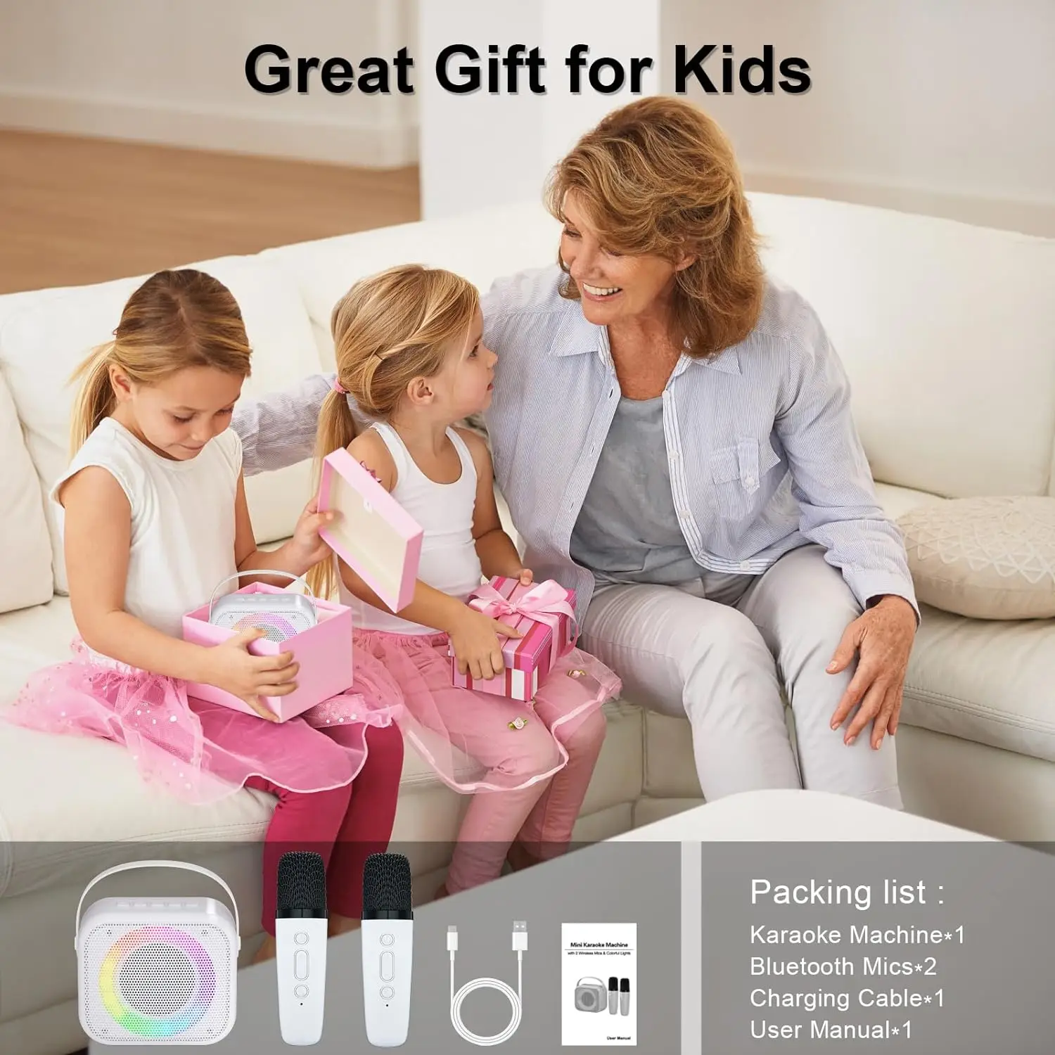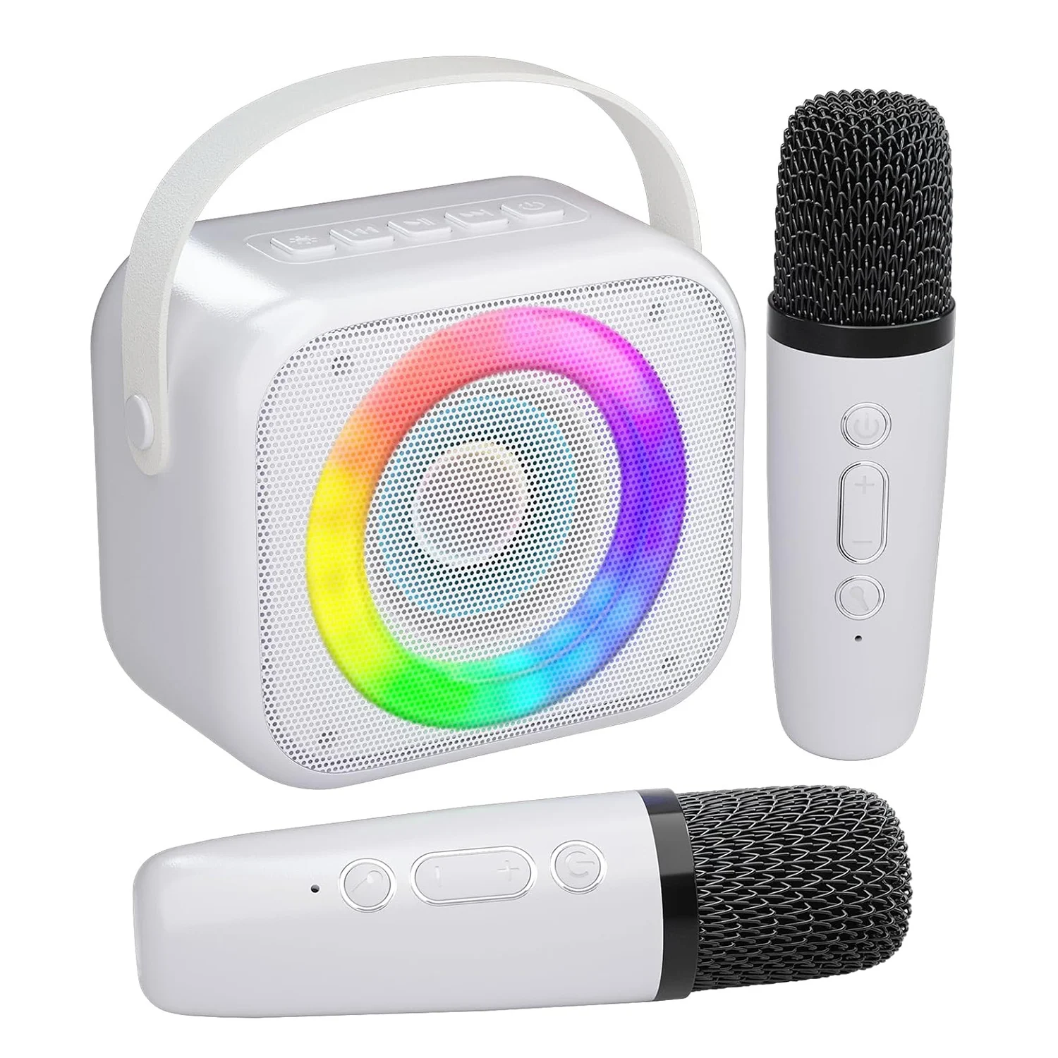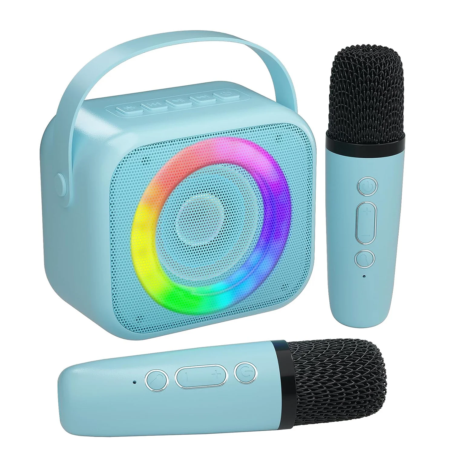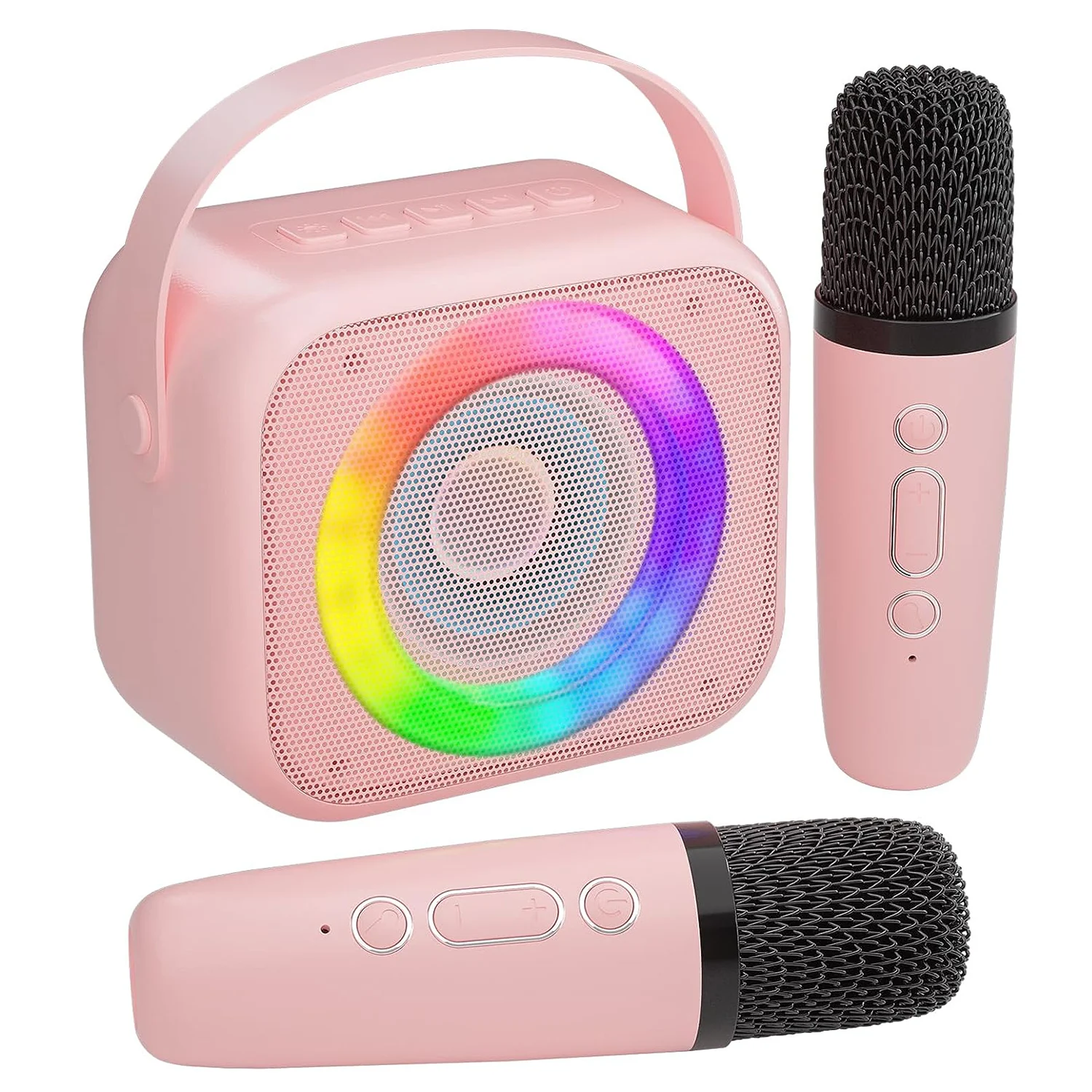 Comprar Máquina de Karaoke para niños y adultos, Mini Altavoz Bluetooth portátil con 2 micrófonos inalámbricos y luces de colores, juguetes de regalo