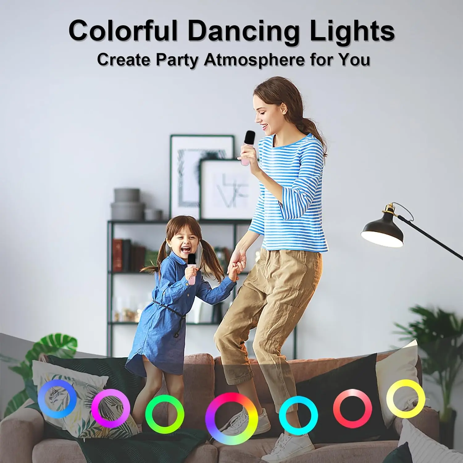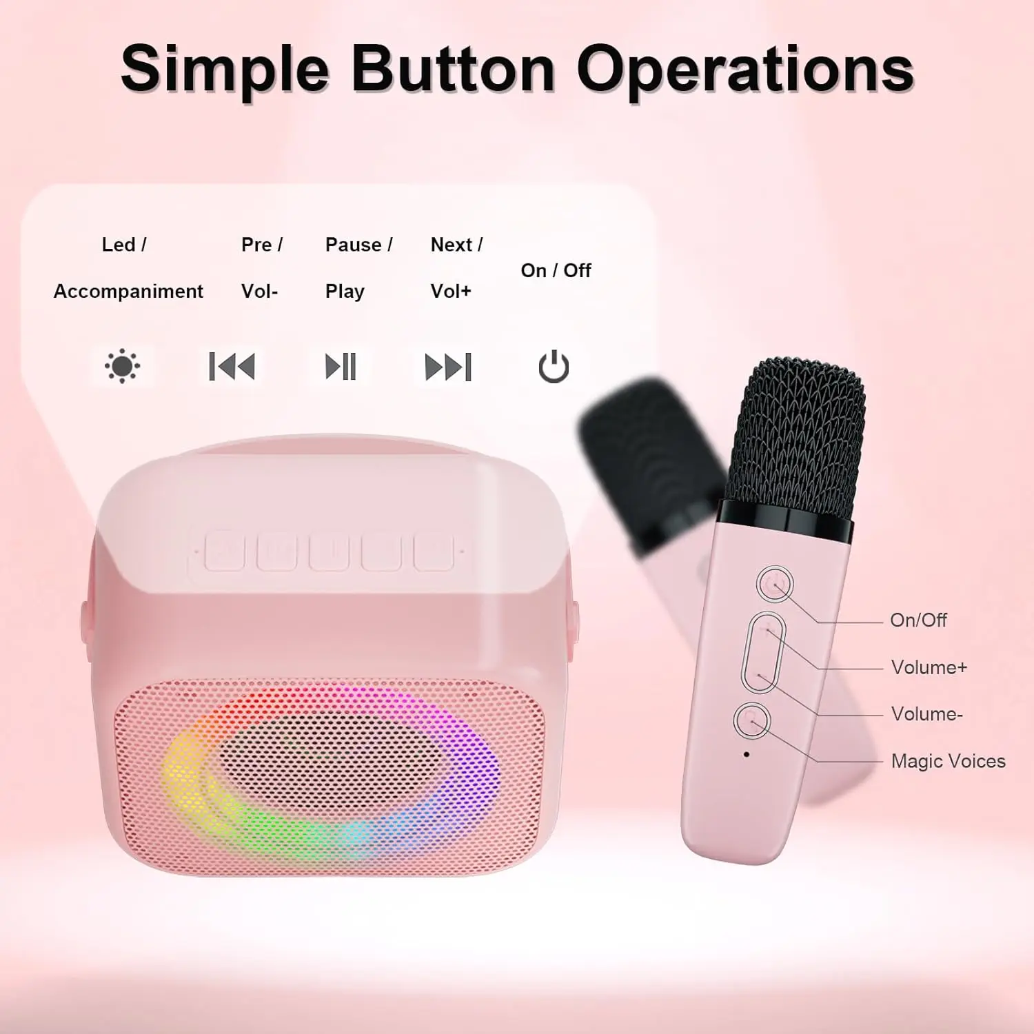 ♪【Diseño portátil y divertido】Con 4 voces mágicas y luces LED de colores (6 modos) que bailan al ritmo de la música. Pulsera de cuero para llevar libremente a cualquier lugar, muy portátil y compacta. Perfecto para fiestas de karaoke para niños en familia, salidas, fitness, reuniones, etc.