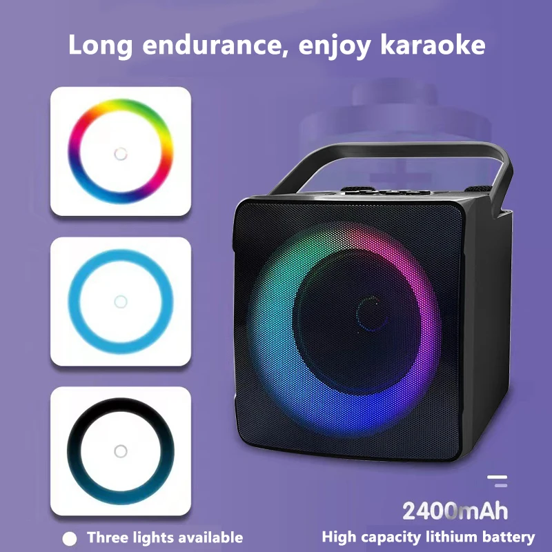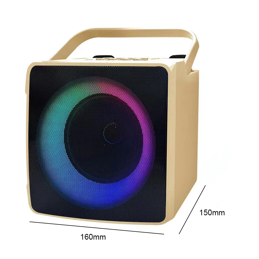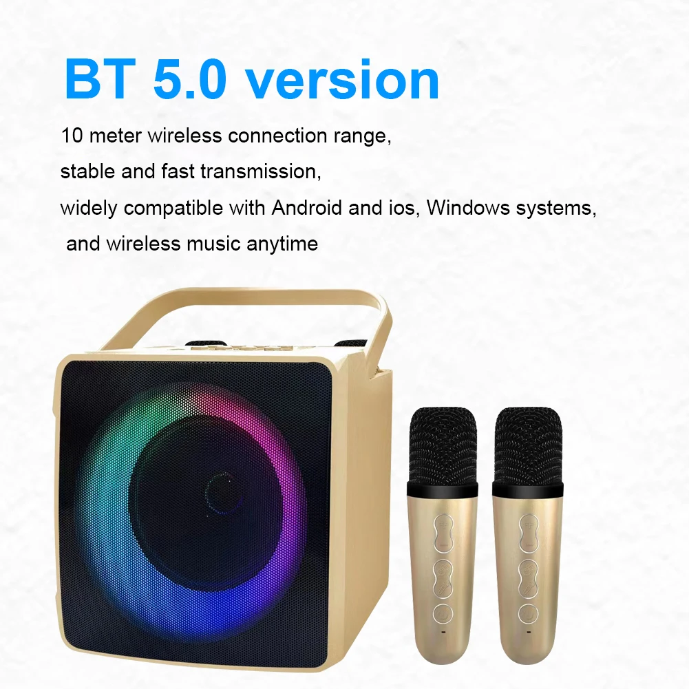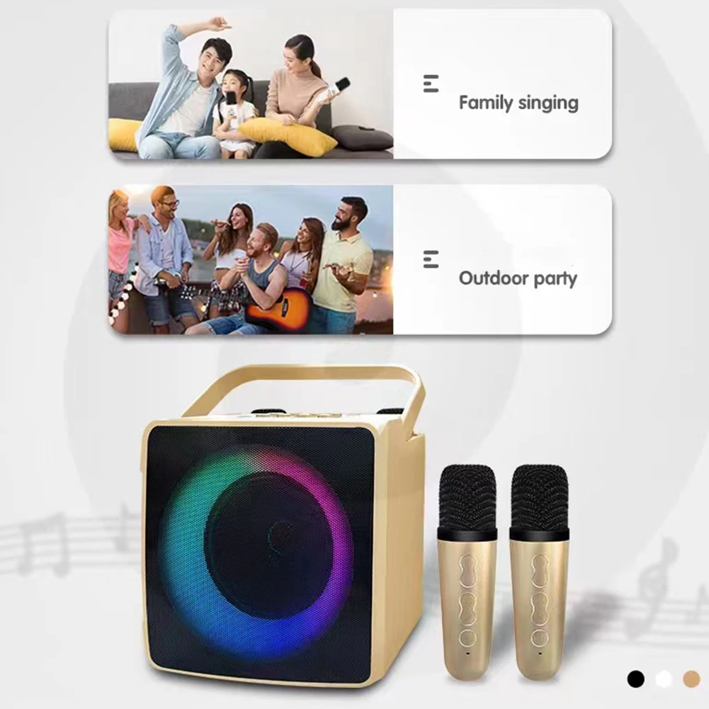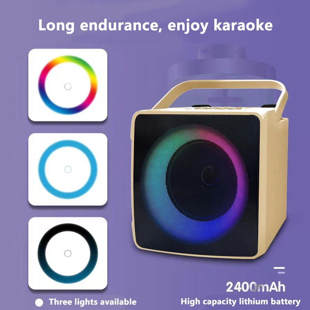 Comprar Máquina de Karaoke portátil con micrófono Dual para exteriores, caja de Altavoz Bluetooth, reproductor HIFI de 10W con luz LED RGB para fiesta en casa