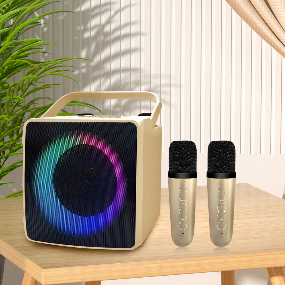Mini altavoz portátil compatible con Bluetooth, reproductor HIFI de 10W con micrófonos inalámbricos duales, máquina de Karaoke con luz LED RGB, compatible con tarjeta USB/TF/AUX/U Disk para niños y adultos, regalos, juguetes para la fiesta familiar en casa