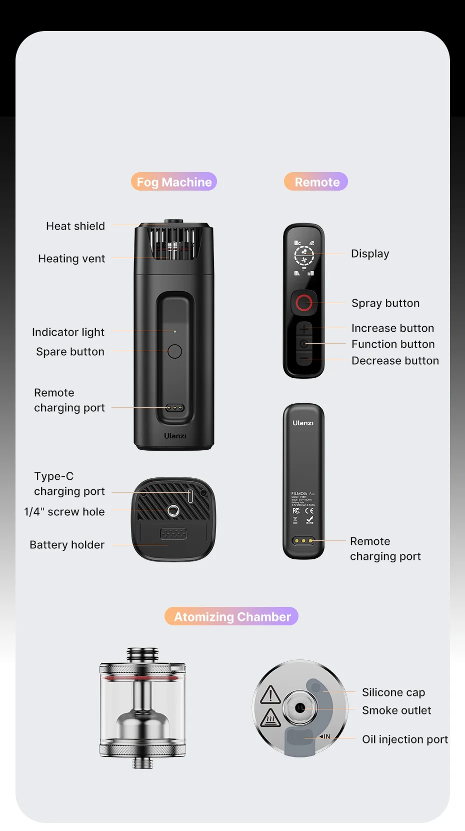 Comprar Máquina de niebla Ulanzi FILMOG Ace, máquina de humo de hielo seco portátil de 40W, efectos de escenario de película de vídeo, Control inalámbrico sin batería/fluido