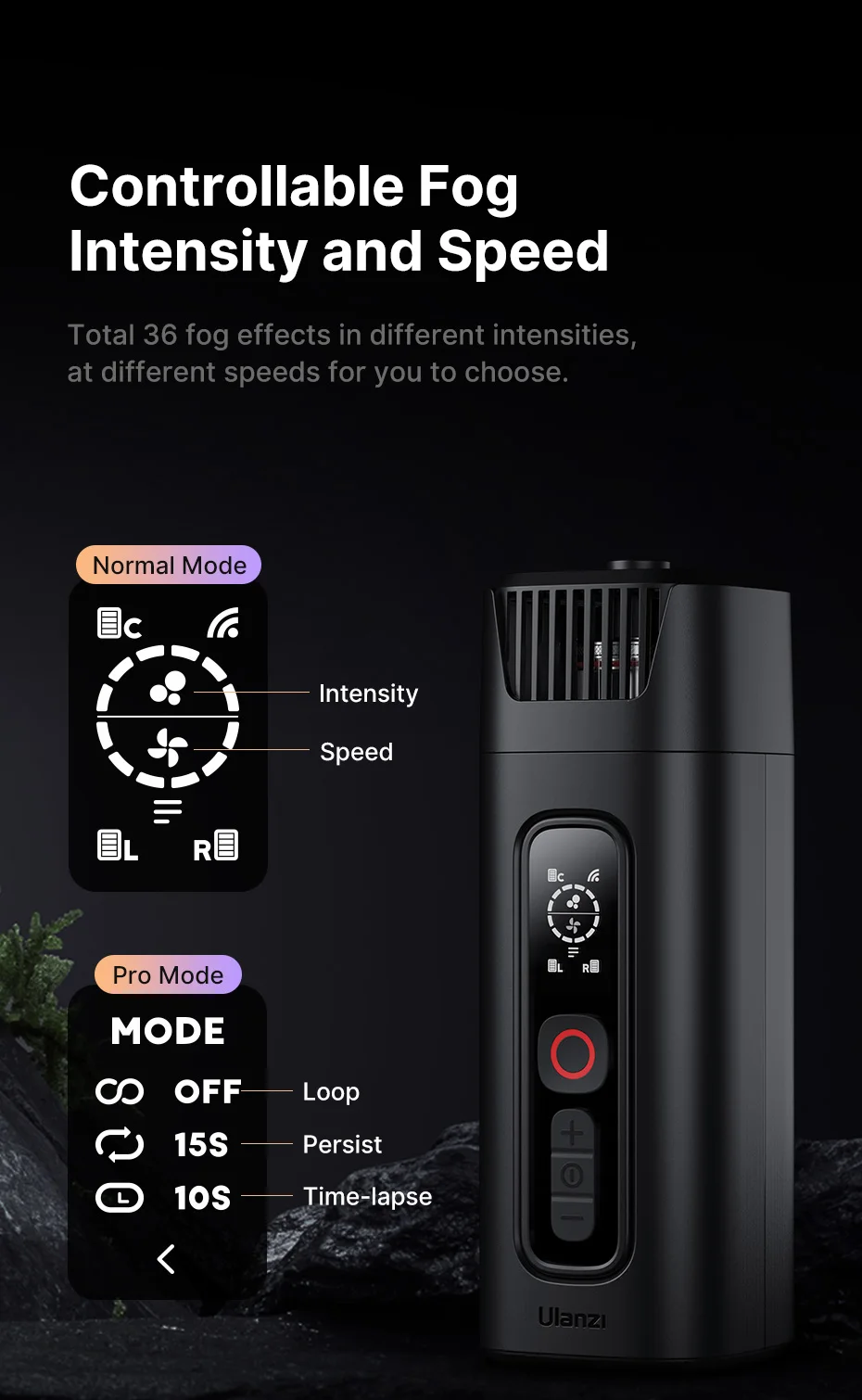 2. Intensidad y velocidad de niebla controlables: un total de 36 efectos de niebla en diferentes intensidades, a diferentes velocidades para que usted elija.