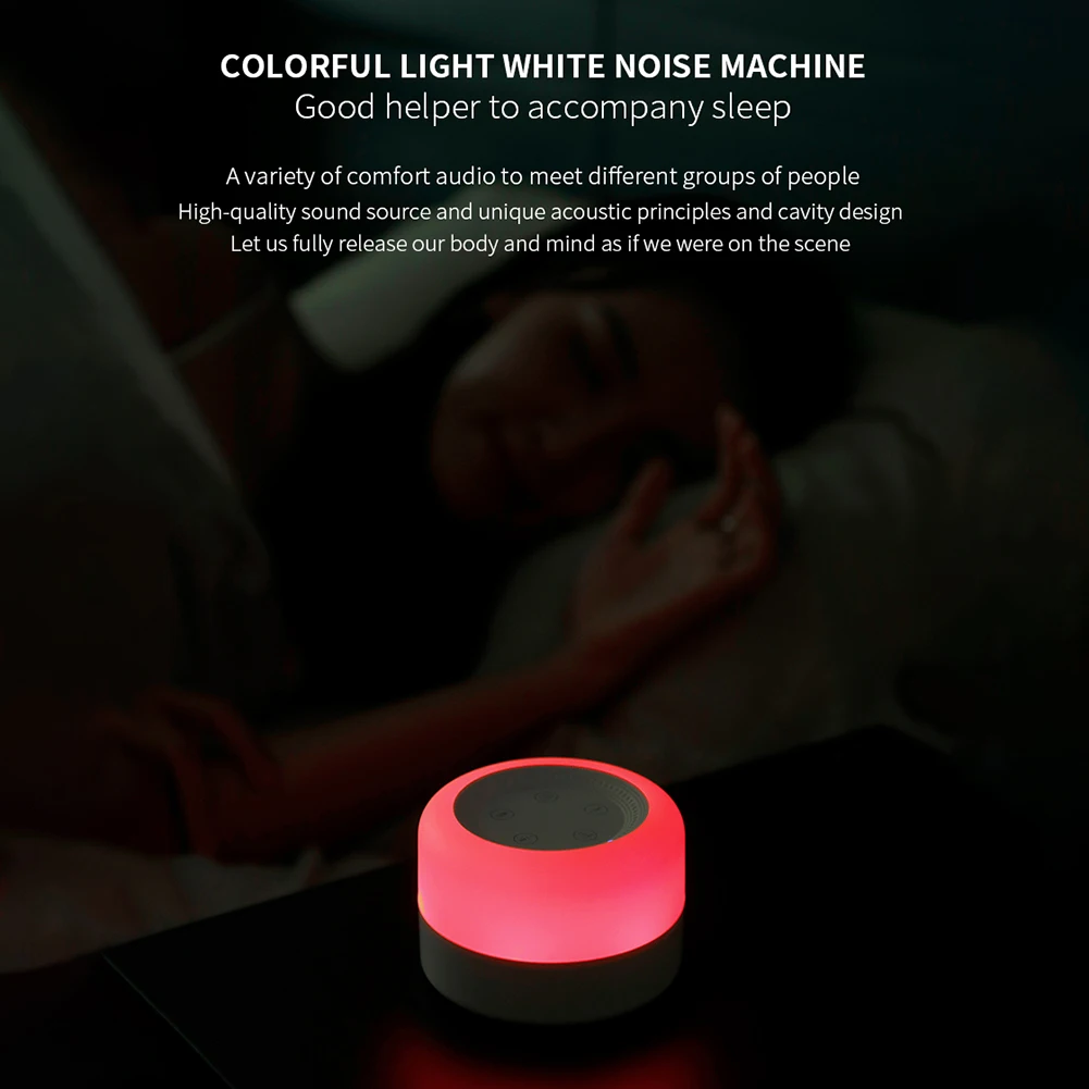 Máquina de ruido blanco de escritorio con luz nocturna, chupete para dormir para bebés y adultos, sonidos relajantes táctiles portátiles, ajustable, recargable por USB para viajes en casa
